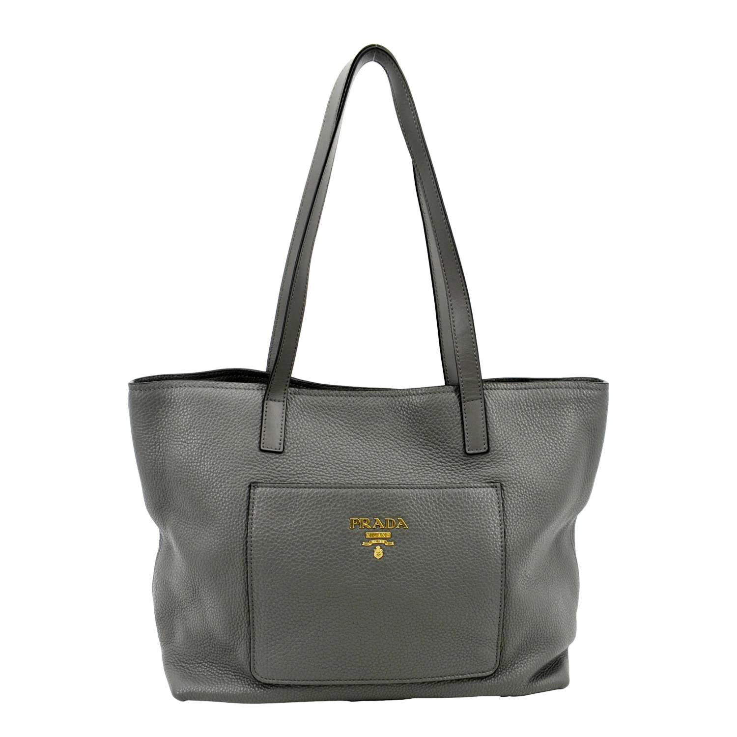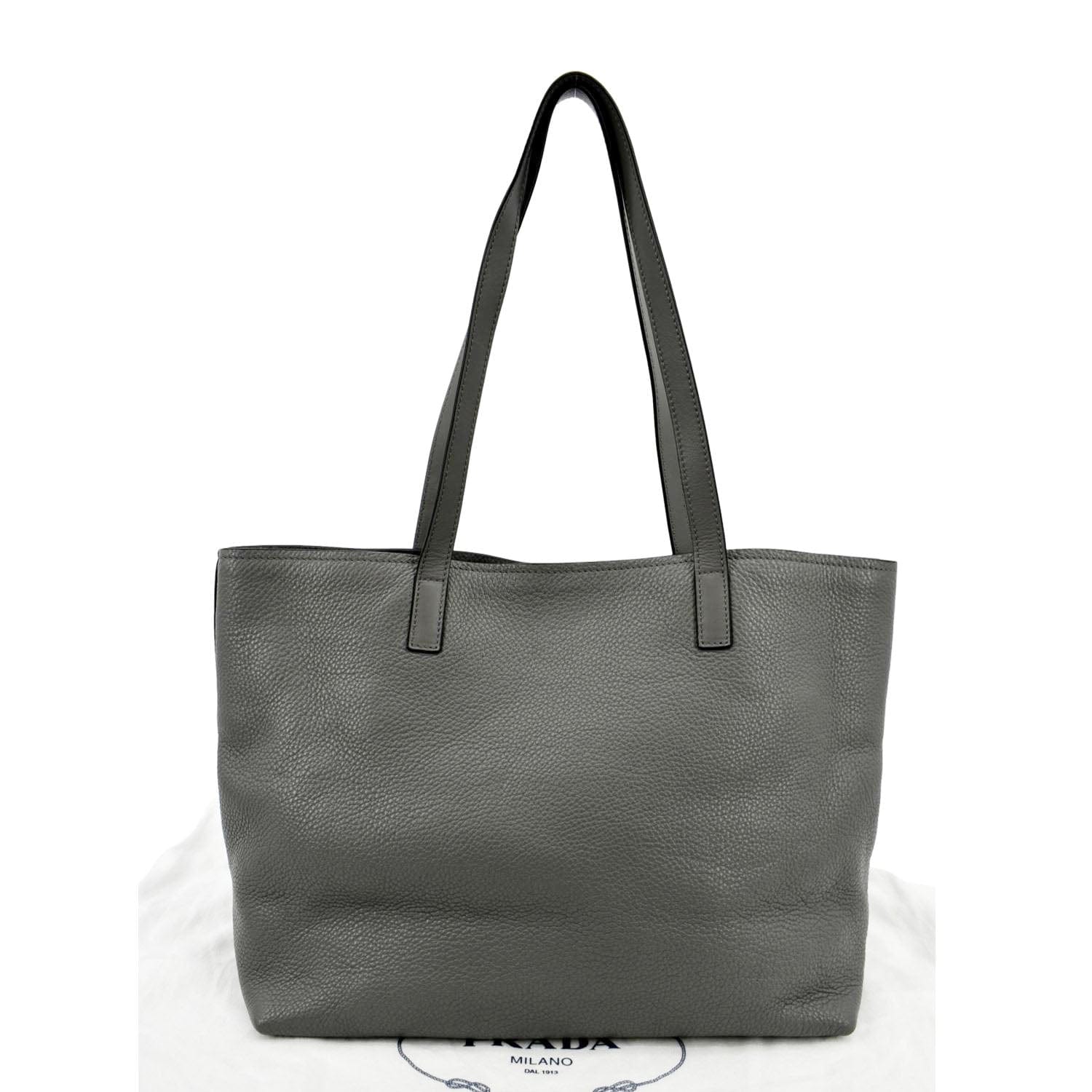 PRADA Vitello Daino Leather Tote Bag Dark Grey