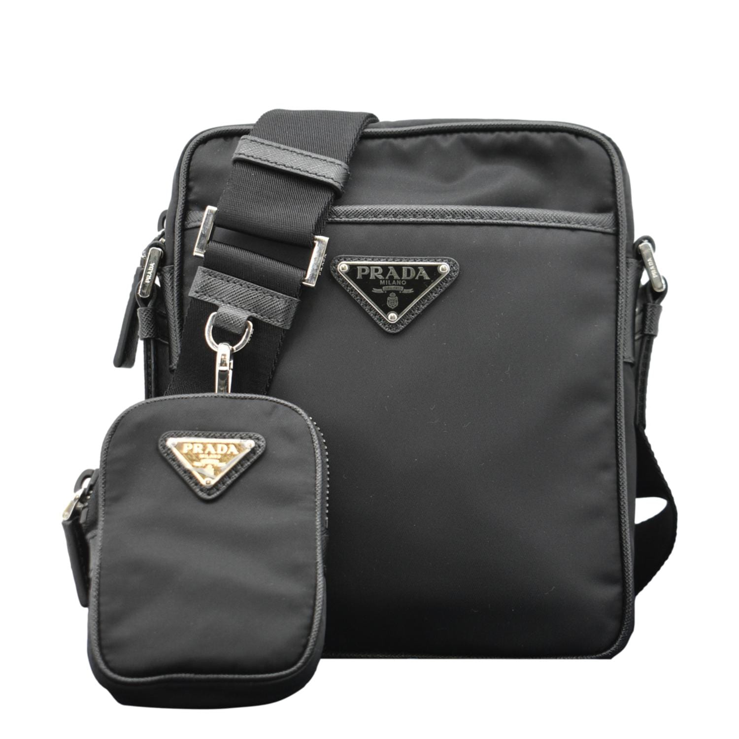 PRADA Re-Nylon Saffiano Leather Crossbody Bag Black