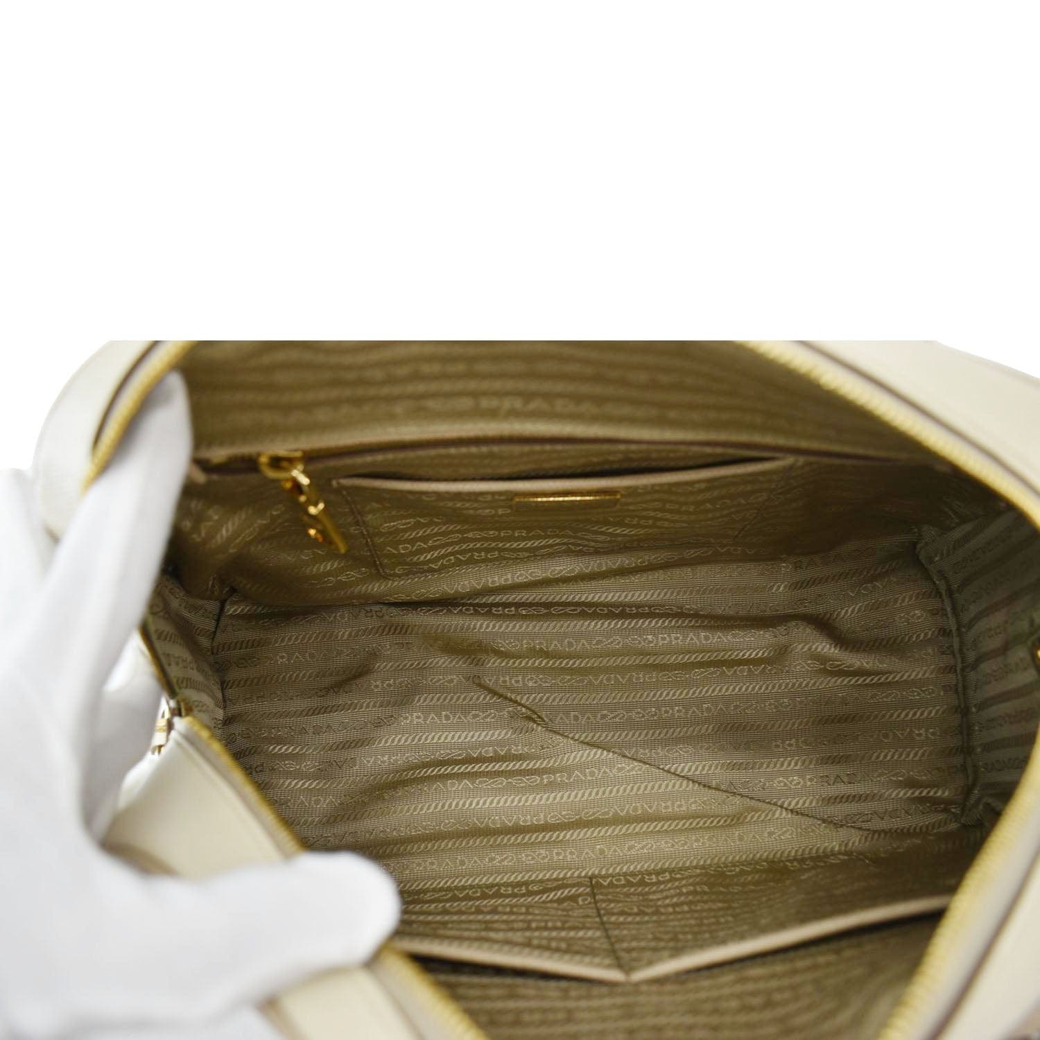 PRADA Bowling Medium Saffiano Cream Leather Satchel Bag