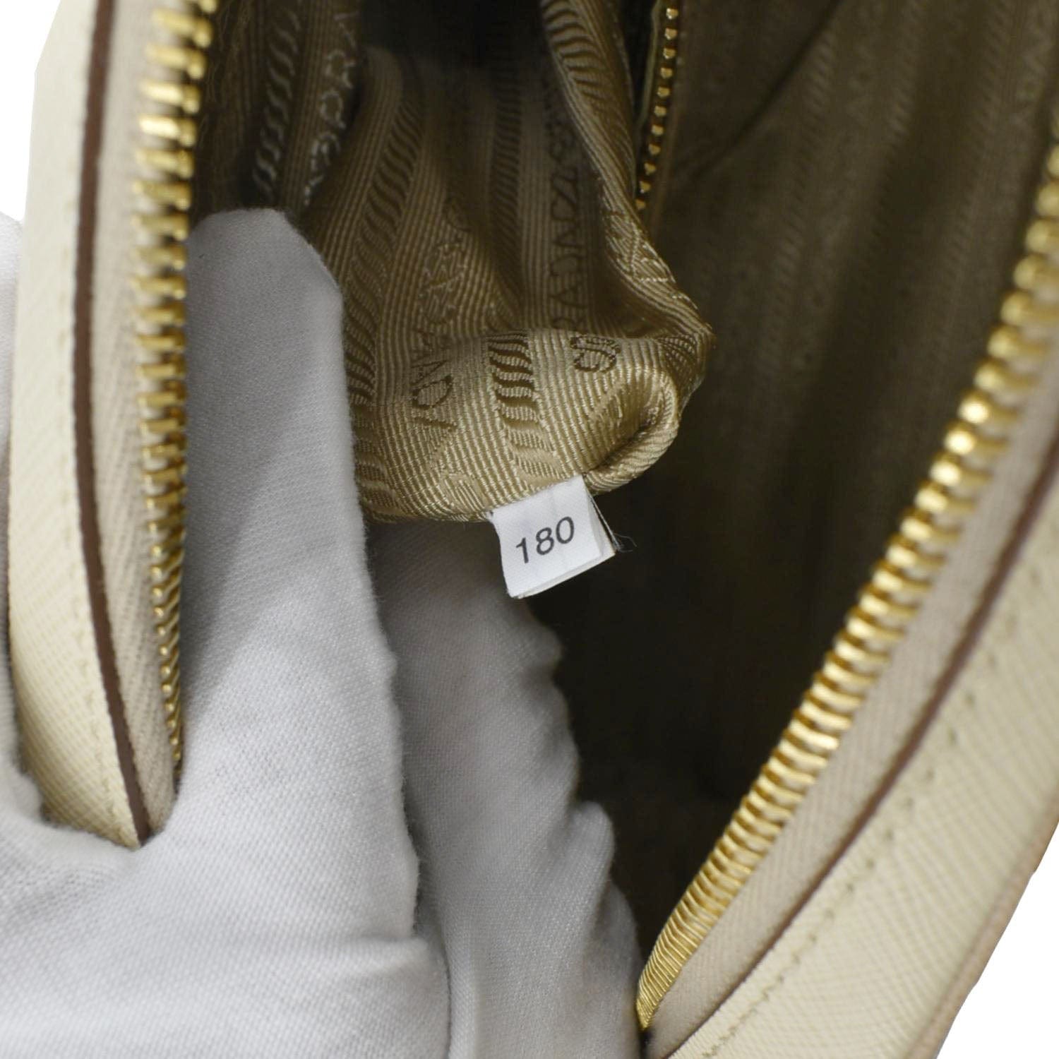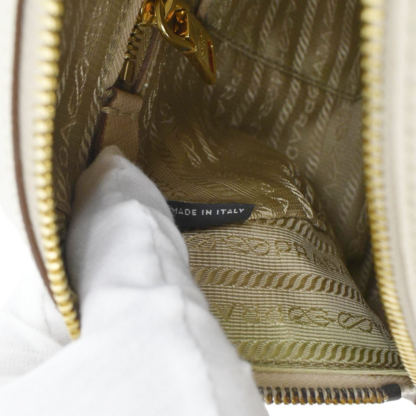 PRADA Bowling Medium Saffiano Leather Satchel Bag Cream