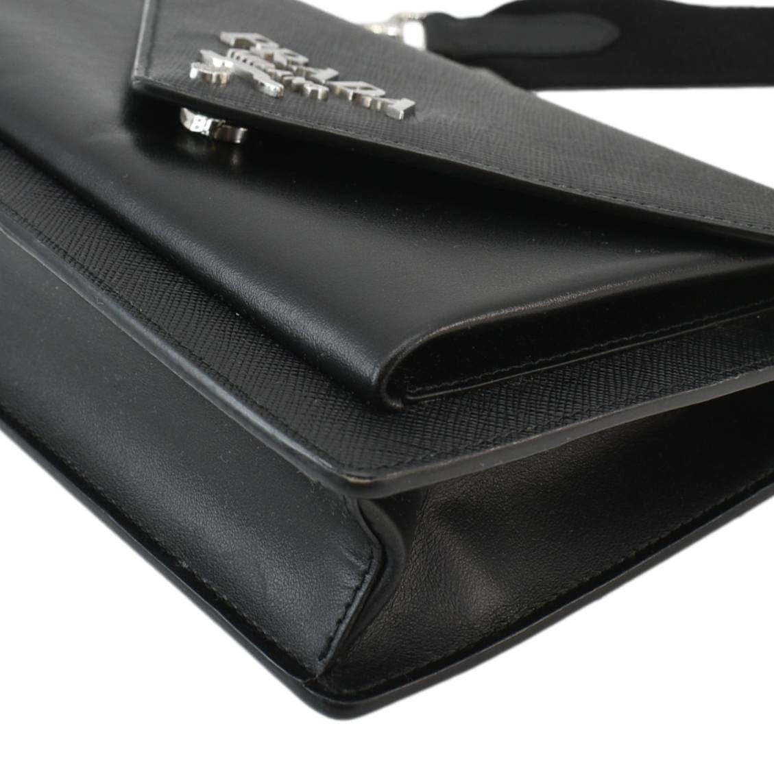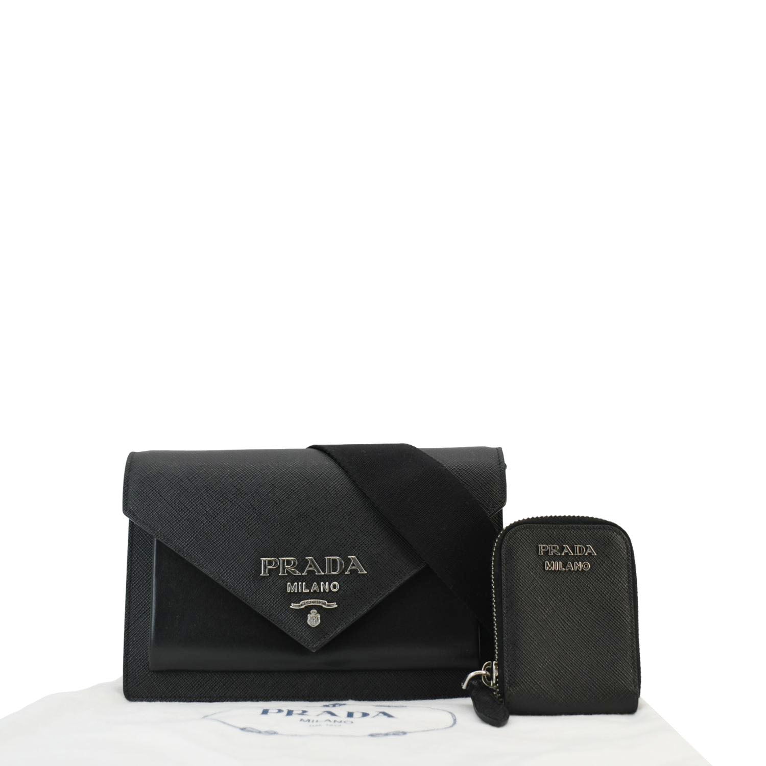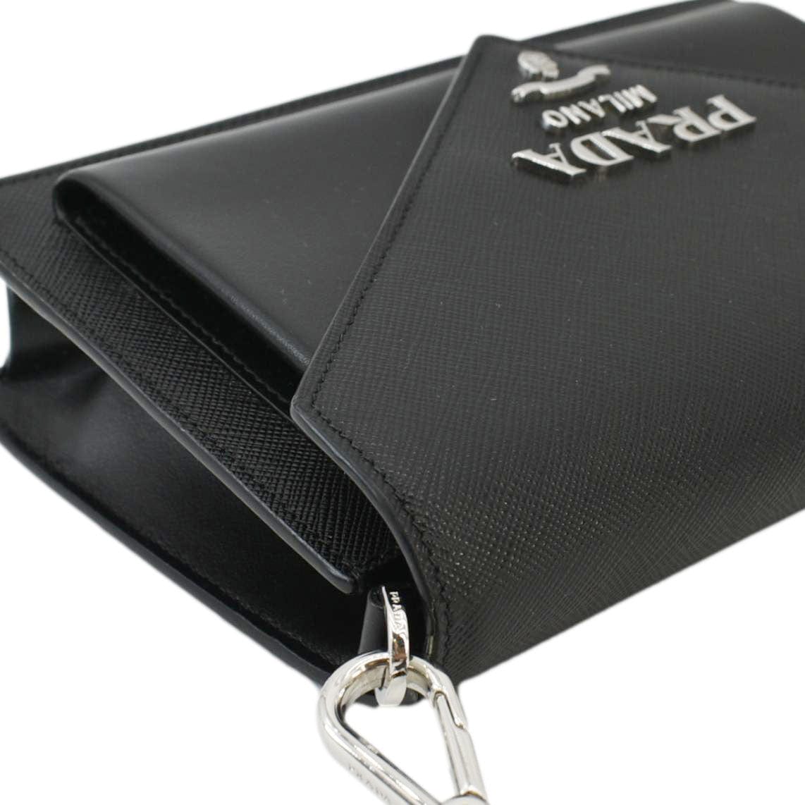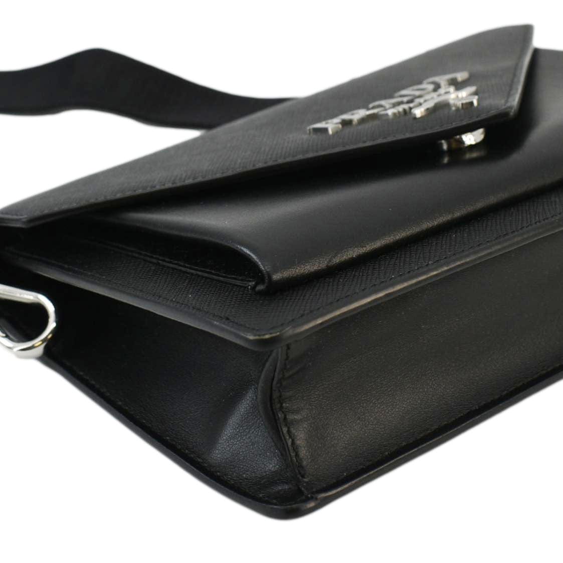 PRADA City Envelope Mini Saffiano Black Leather Crossbody Bag