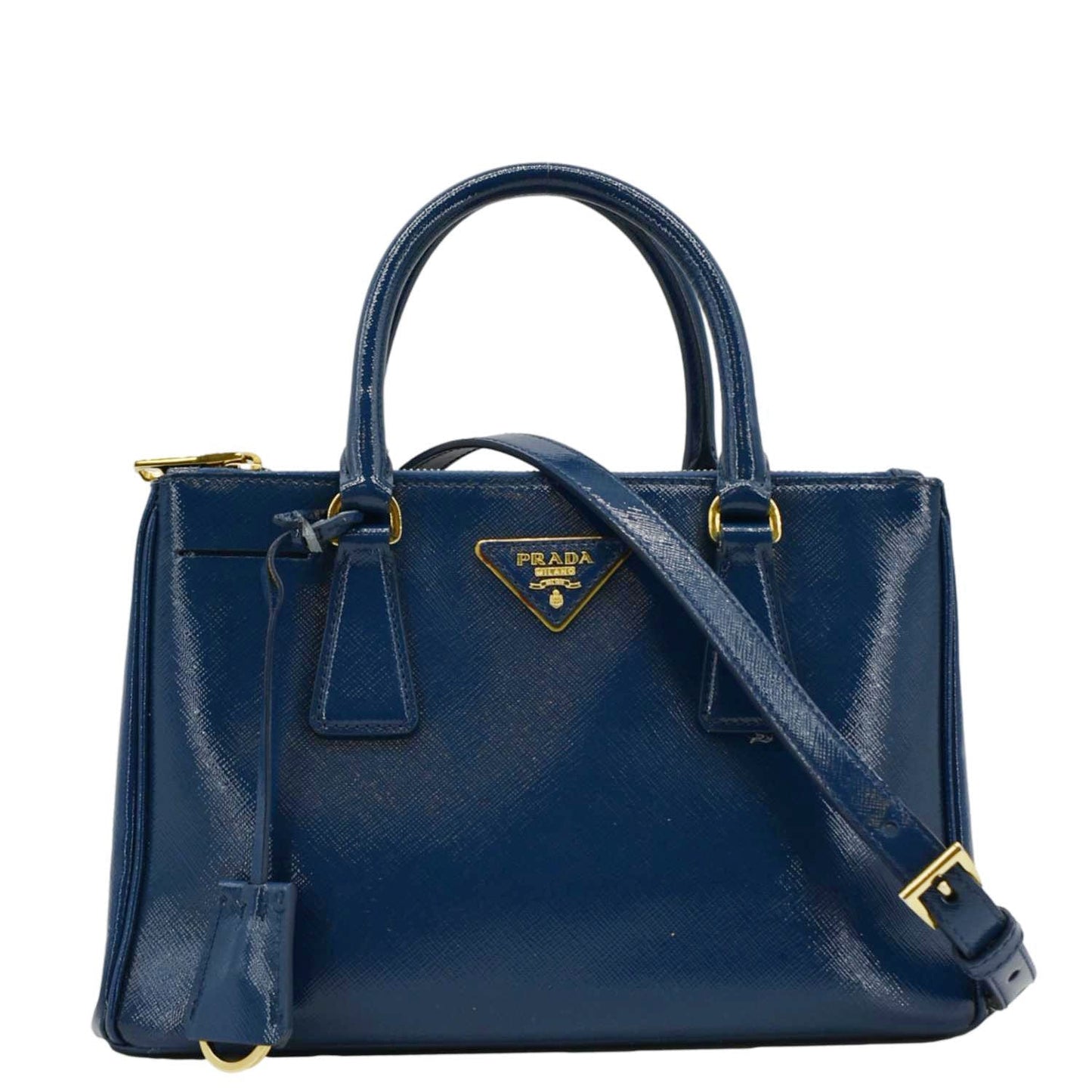 PRADA Galleria Double-Zip Mini Saffiano Leather Tote Bag Blue
