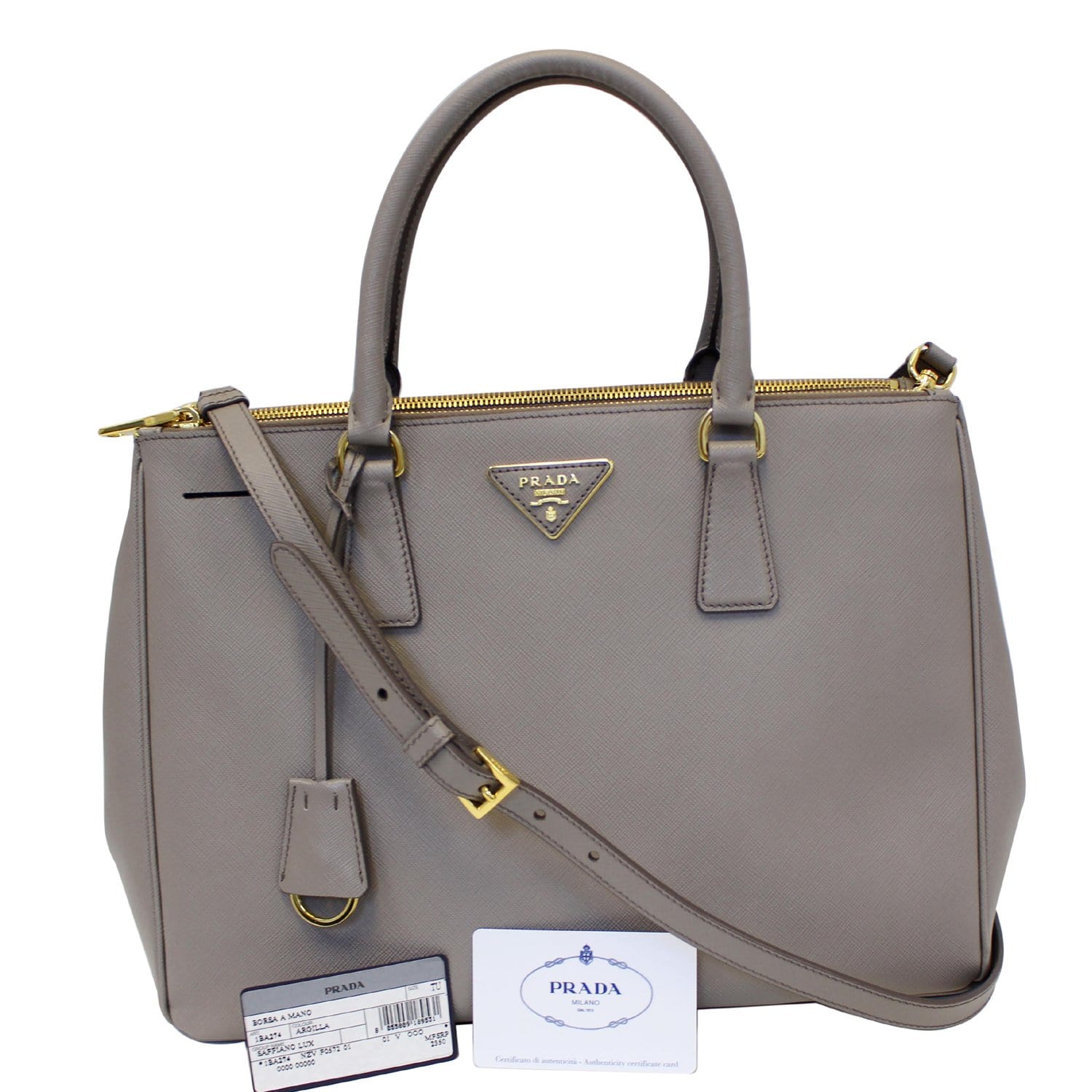 PRADA Saffiano Double Zip Executive Tote Shoulder Bag Grey