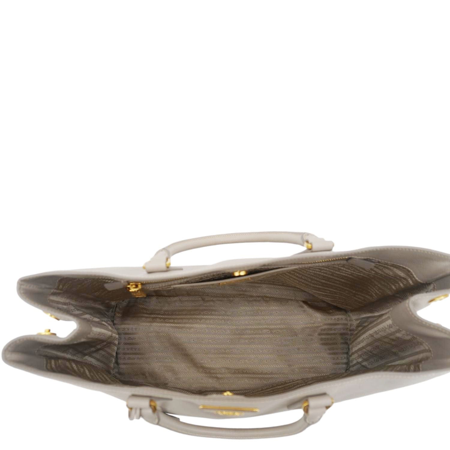 PRADA Galleria Double Zip Saffiano Leather Top Handle Tote Bag Beige
