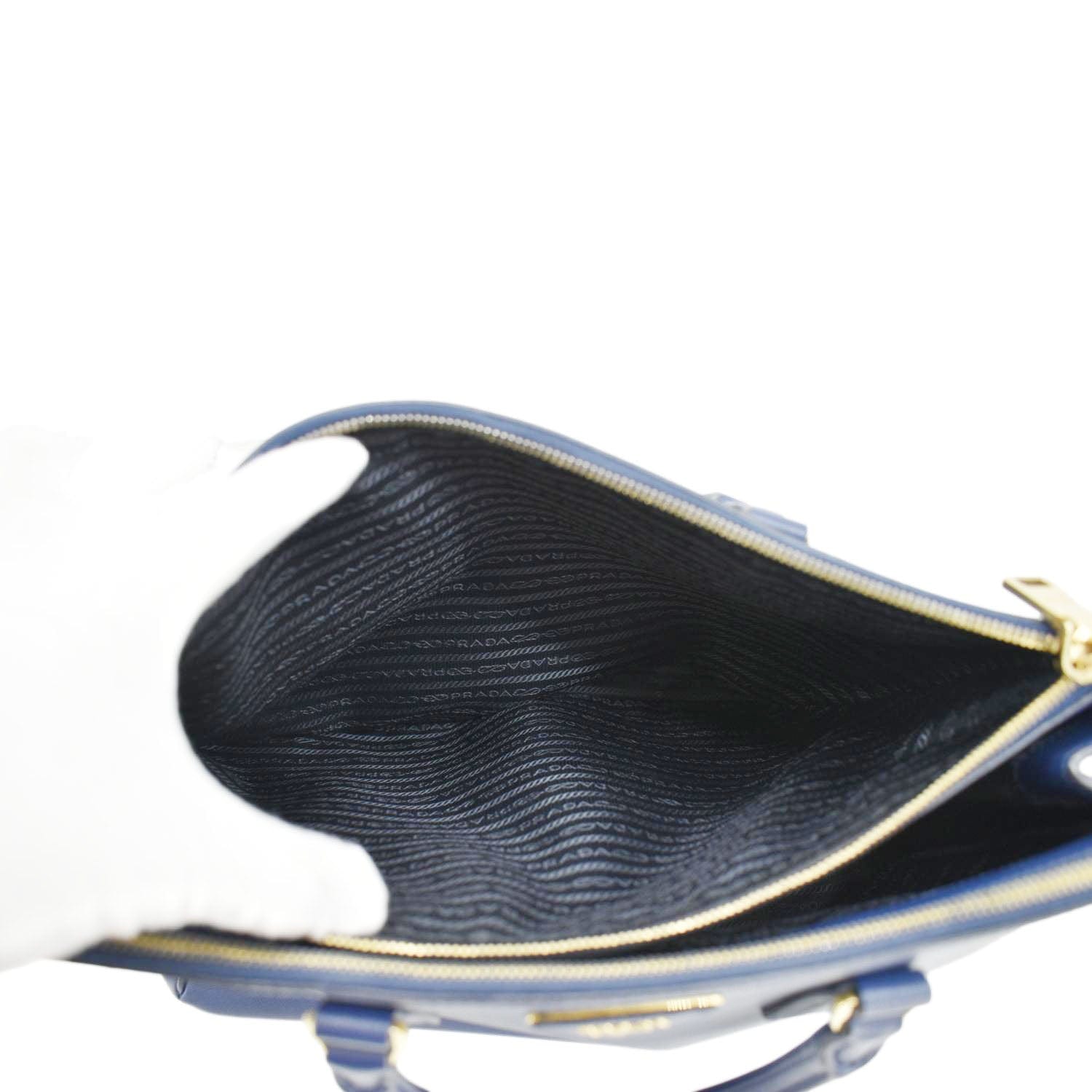 PRADA Galleria Double-Zip Medium Saffiano Blue Leather Tote Bag