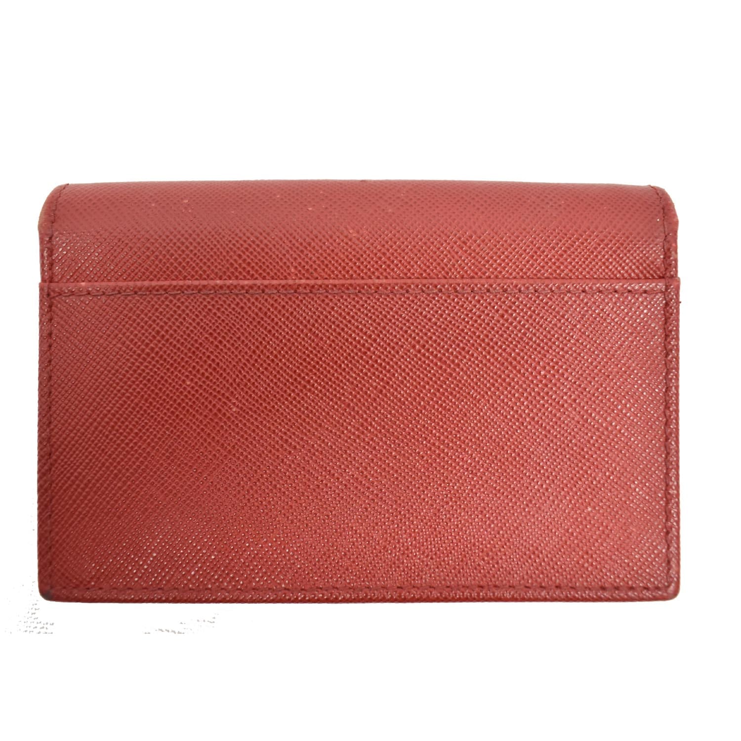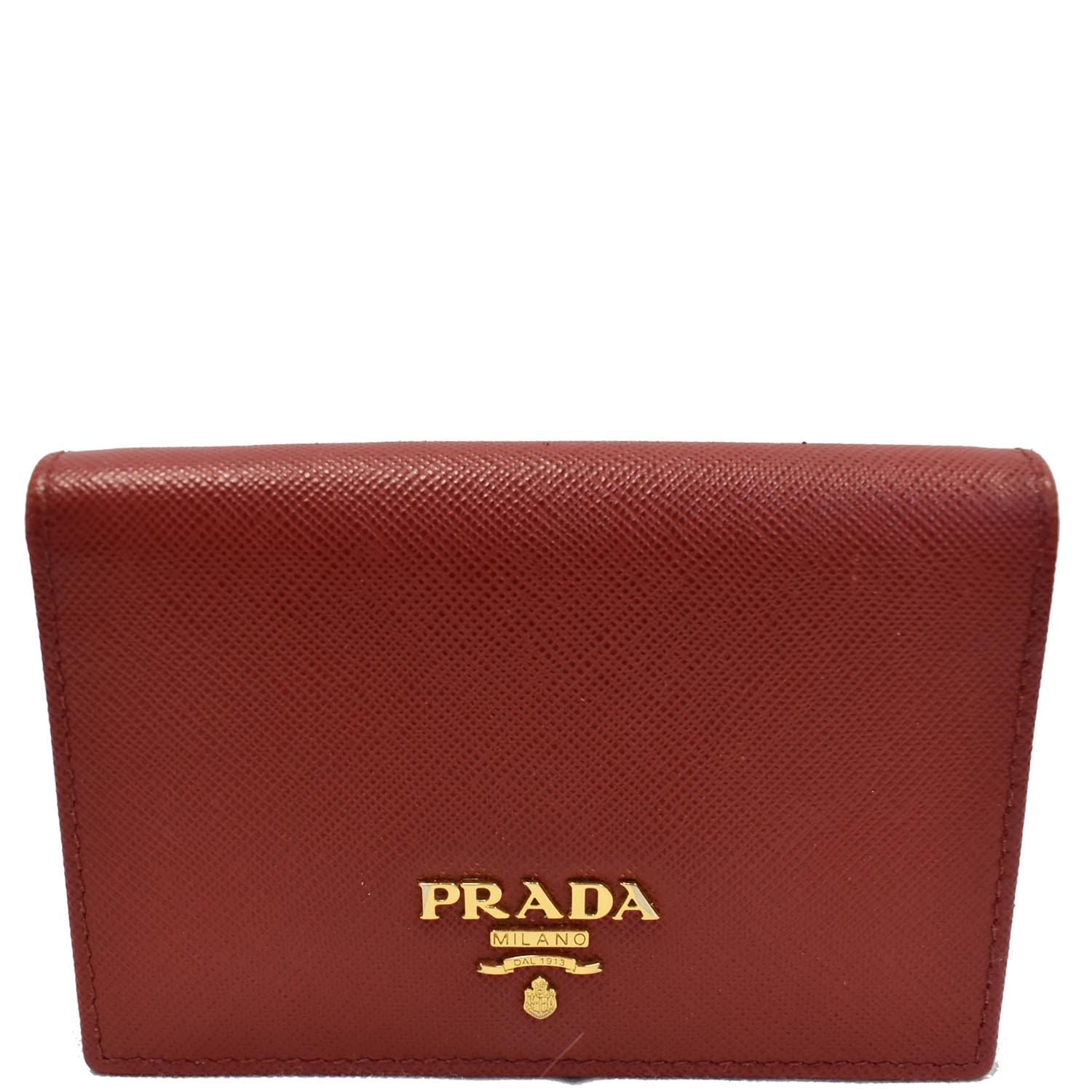 PRADA Saffiano Leather Bi-Fold Wallet Card Case Coin Purse Red - Final Sale