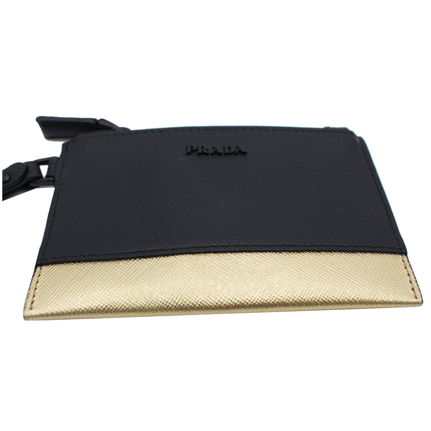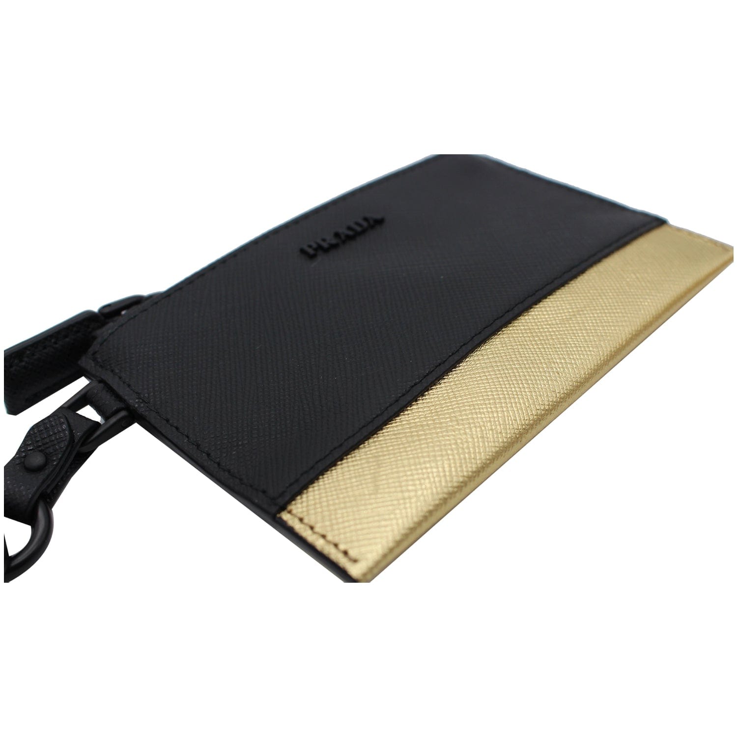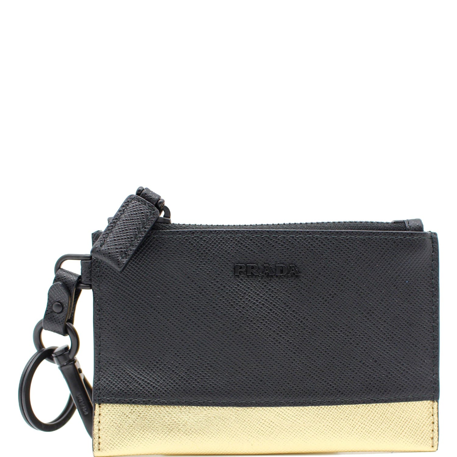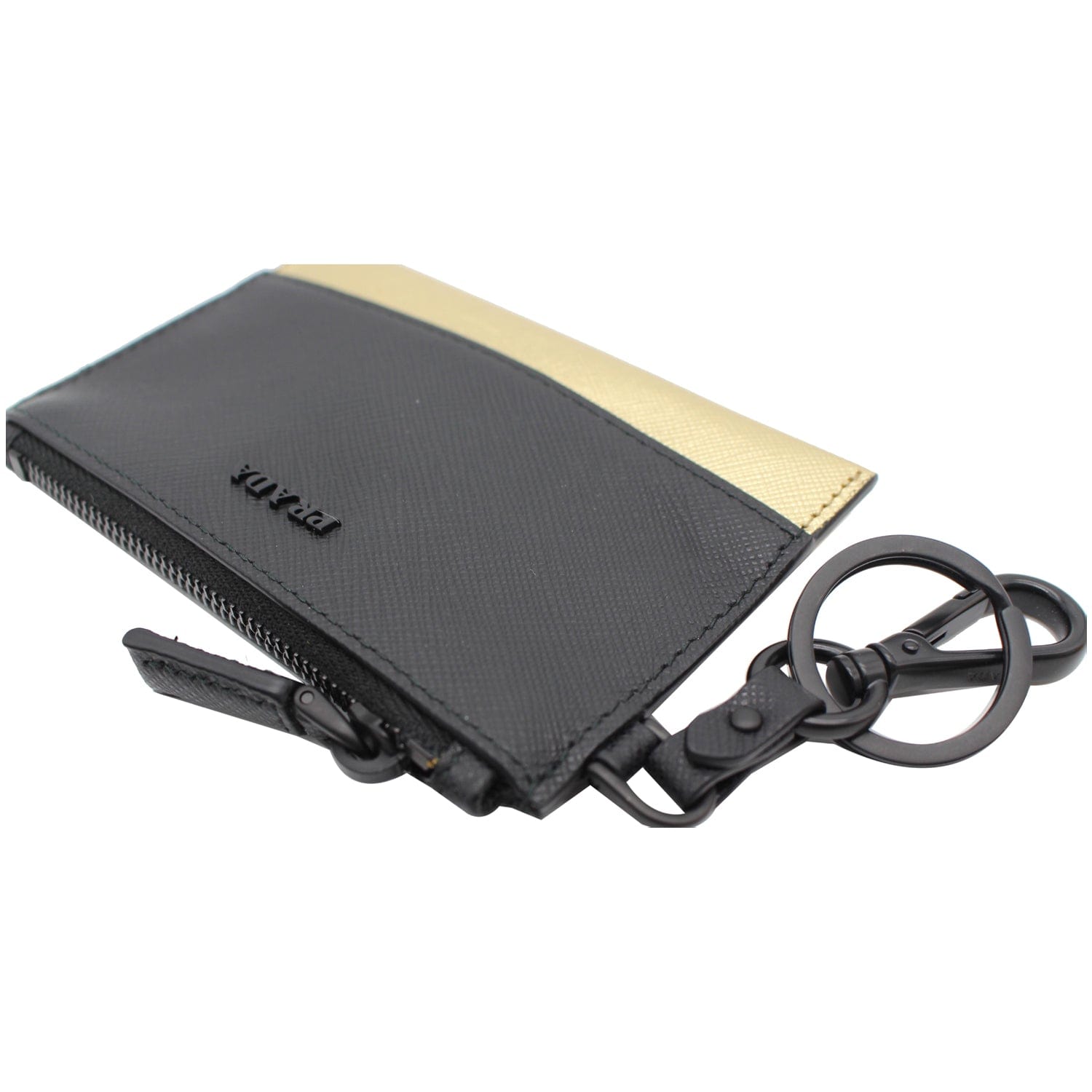 PRADA Saffiano Leather Keychain Coin Purse Black
