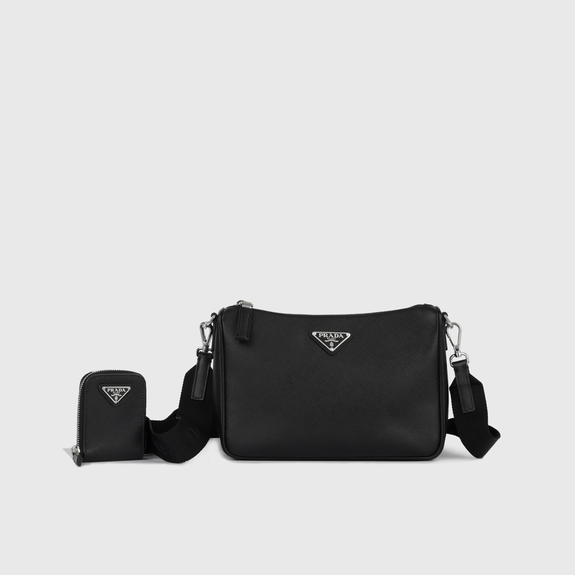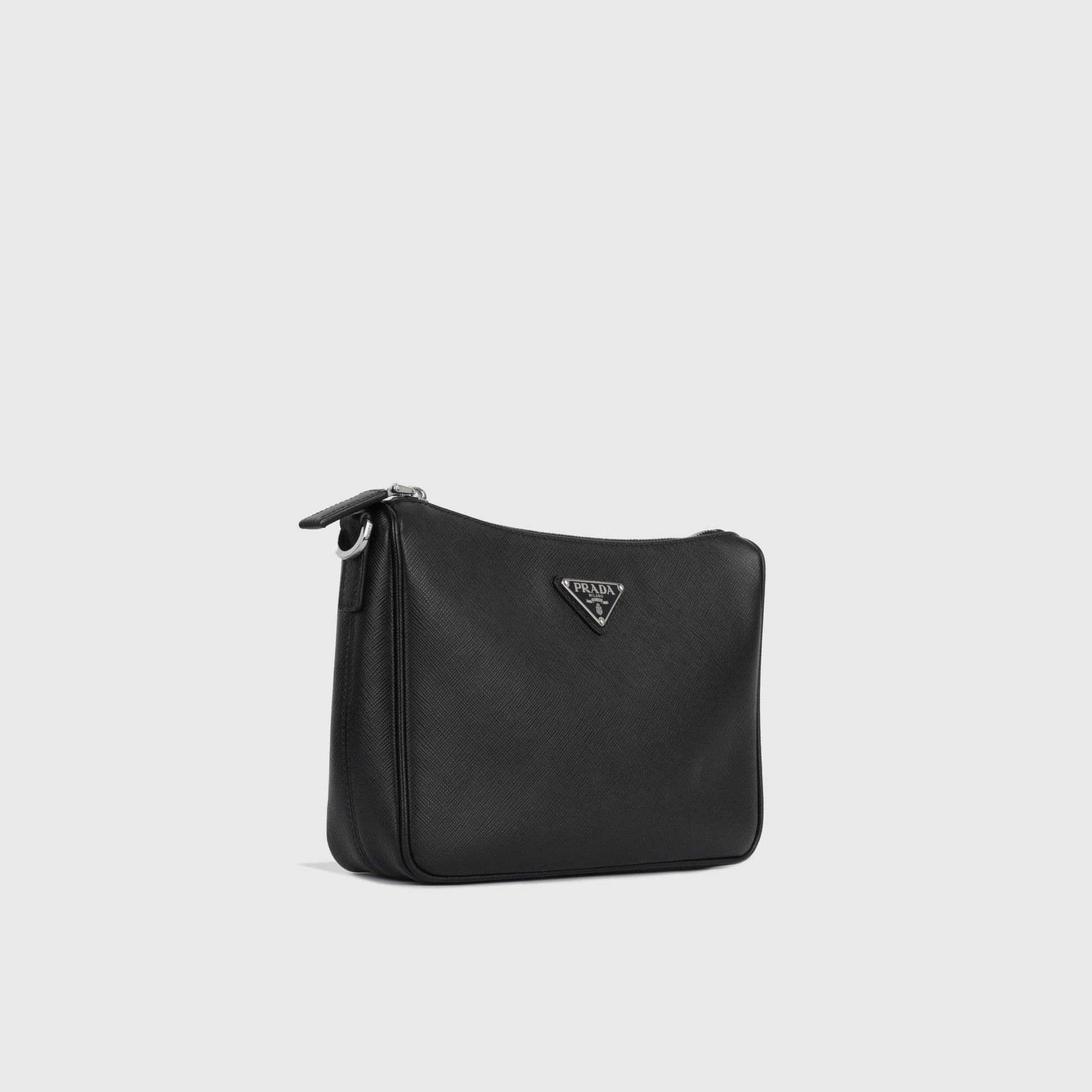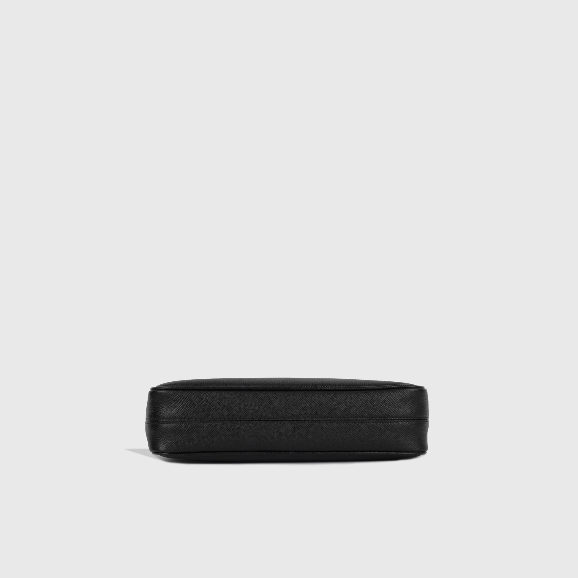 A mid-sized silhouette and crafted from the classic Saffiano leather. The men's Saffiano Leather Shoulder bag is an everyday essential with a removable fabric shoulder strap and nylon pouch.