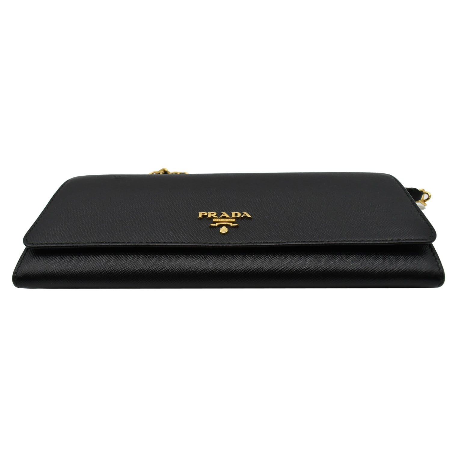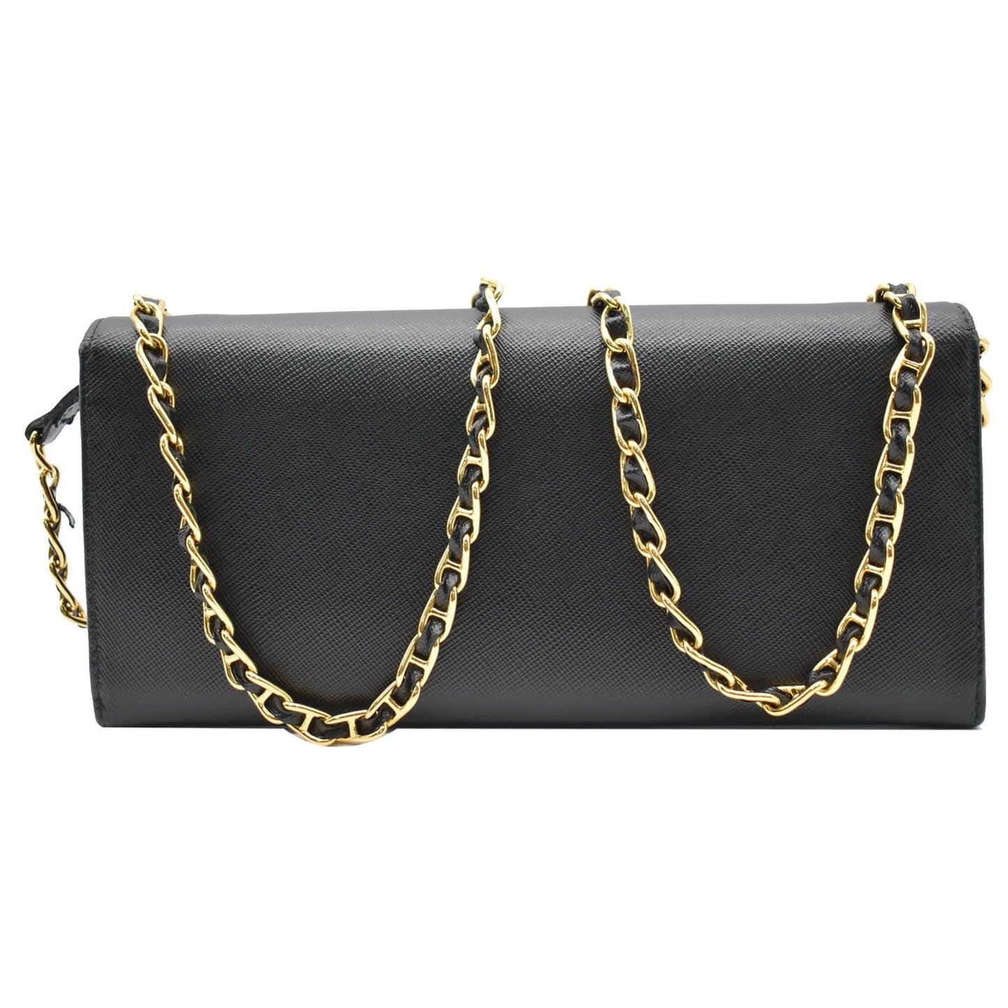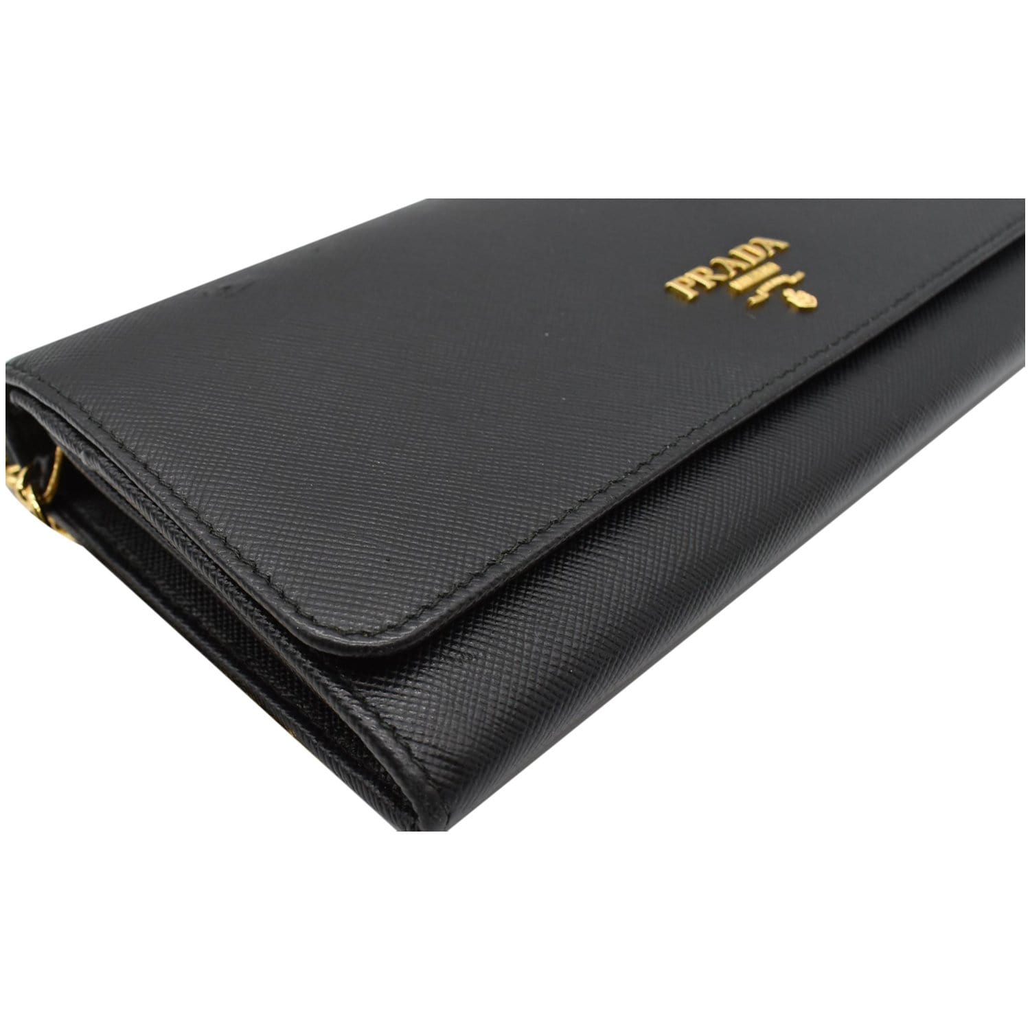 PRADA Saffiano Leather Wallet on Chain Clutch Crossbody Bag Black
