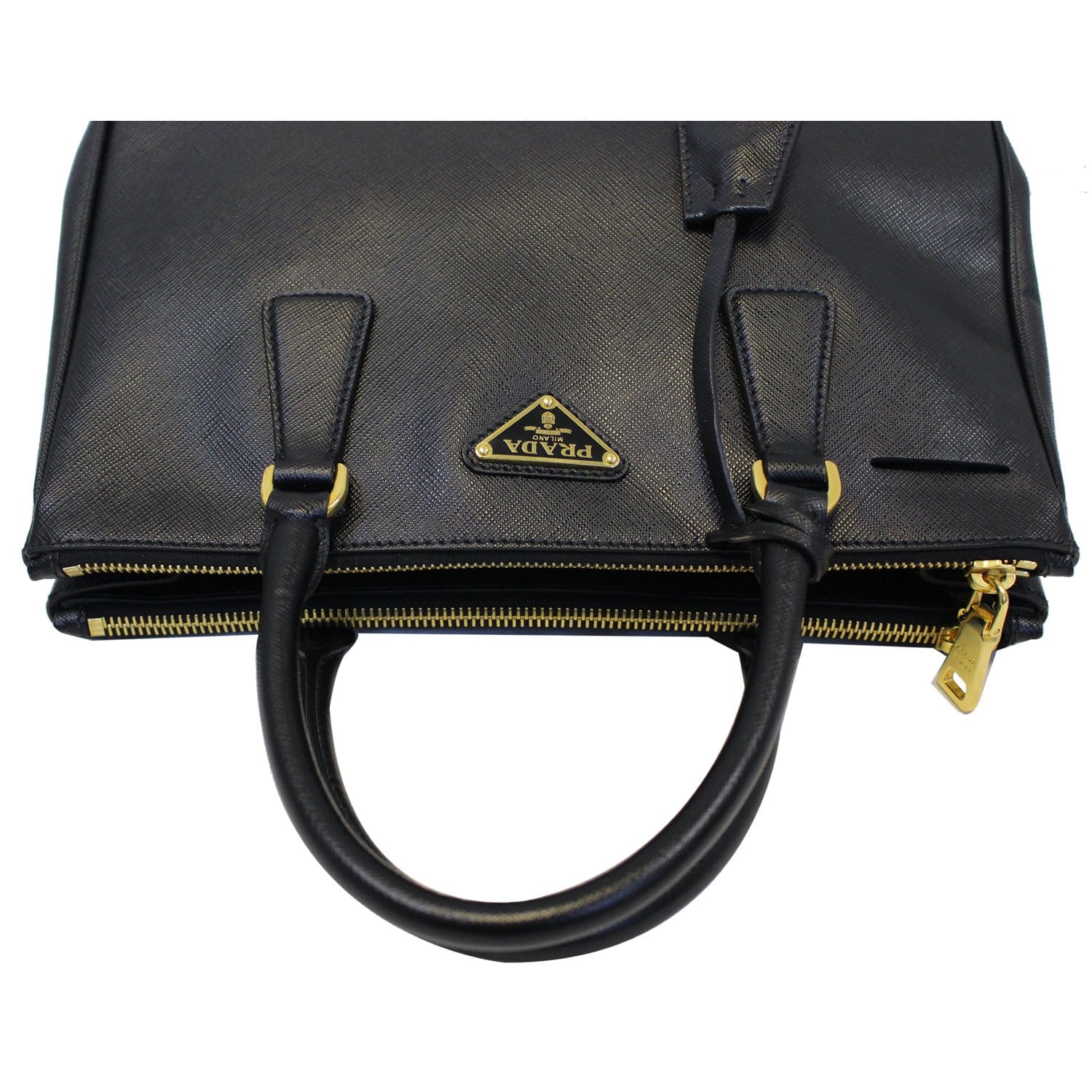PRADA Saffiano Lux Small Double-Zip Tote Bag Black