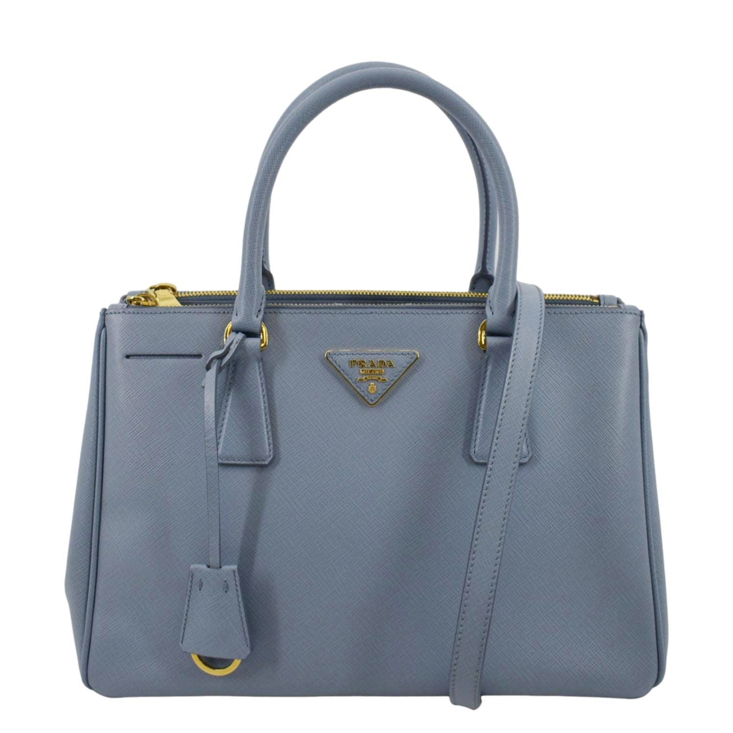 PRADA Galleria Double-Zip small Saffiano Leather Tote Bag Light Blue