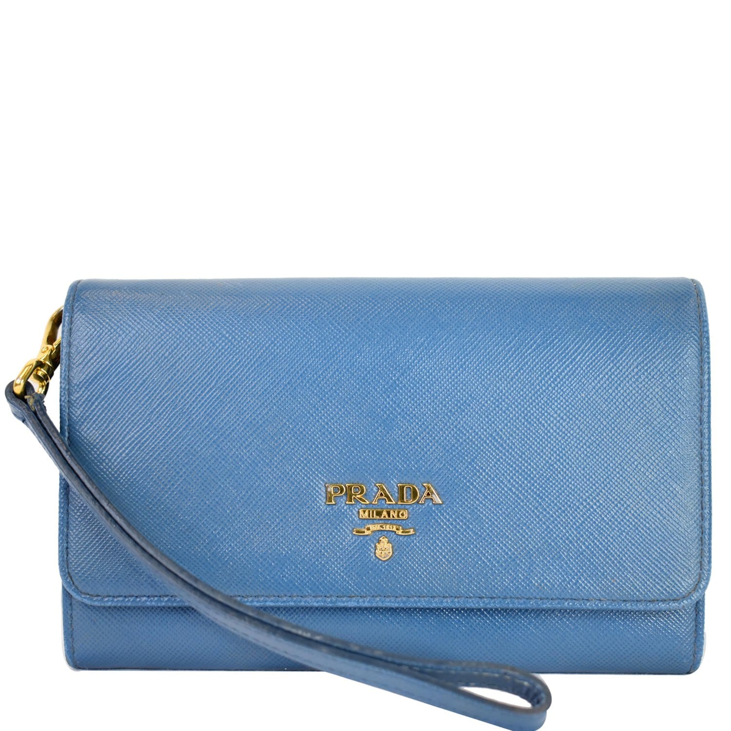 PRADA Saffiano Textured Leather Wristlet Wallet Blue