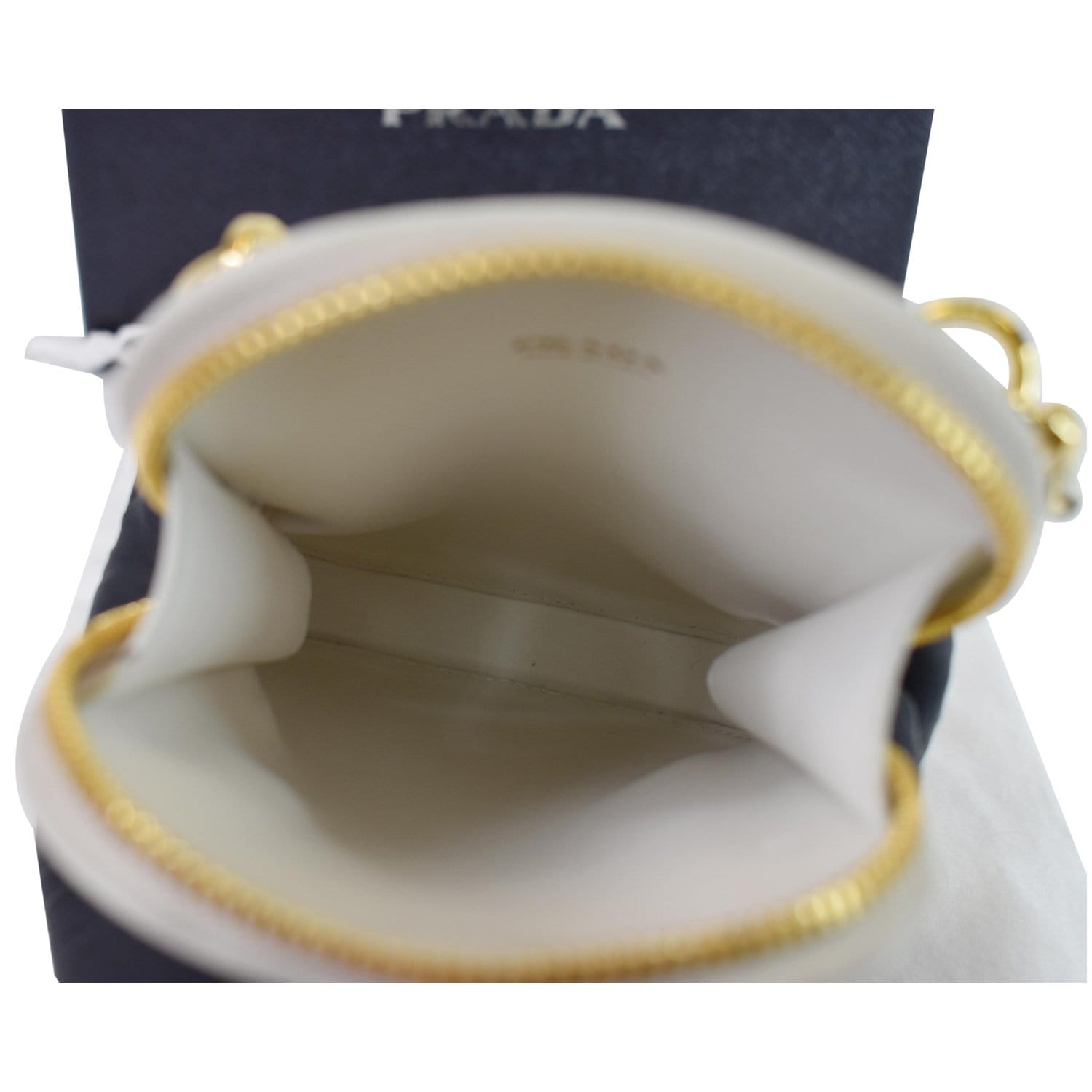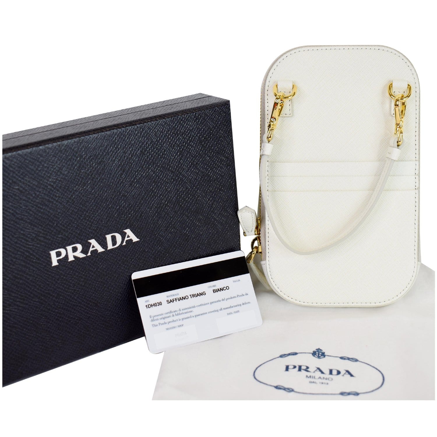 PRADA Saffiano Triangle Leather Crossbody Phone Pouch Bag White