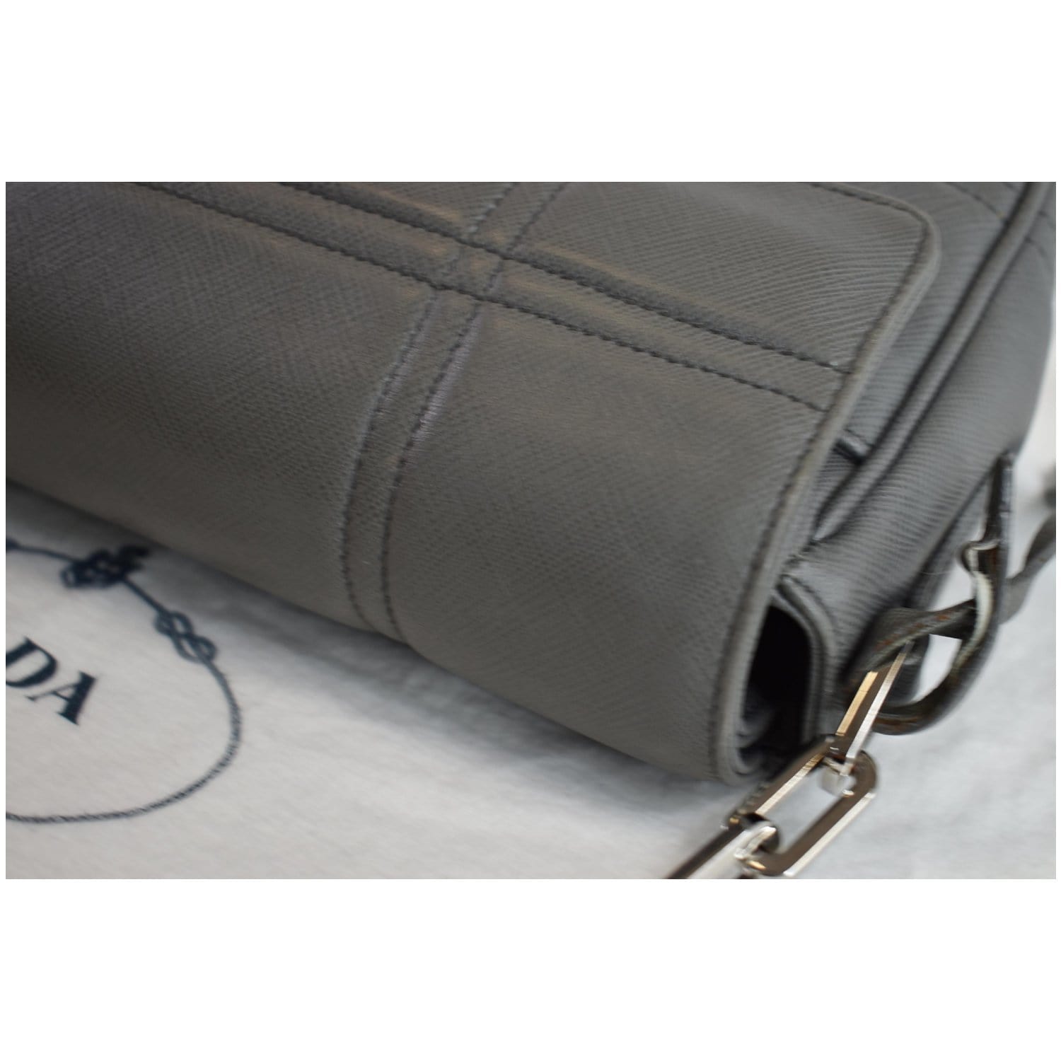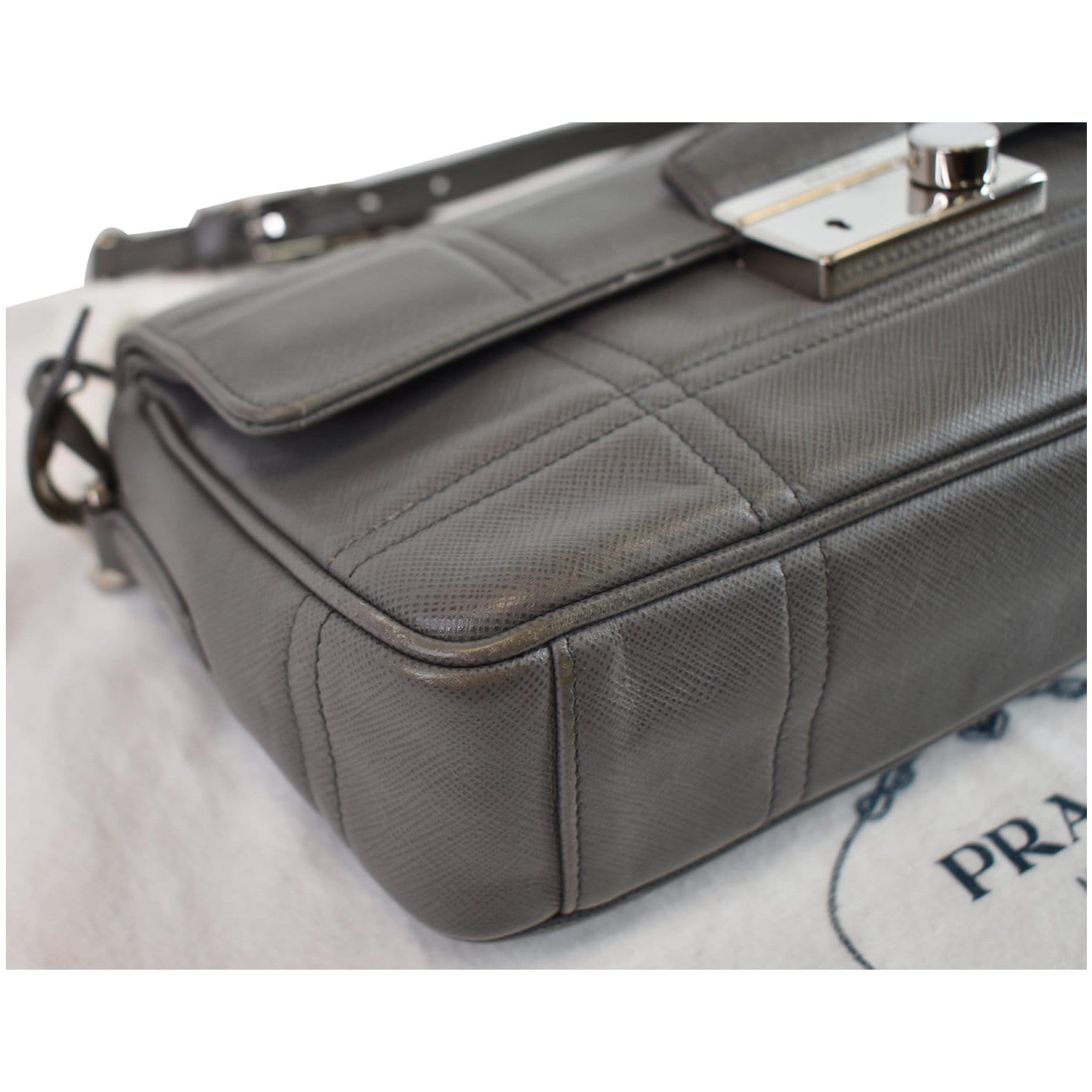 PRADA Saffiano Lux Leather Sound Shoulder Bag Light Grey