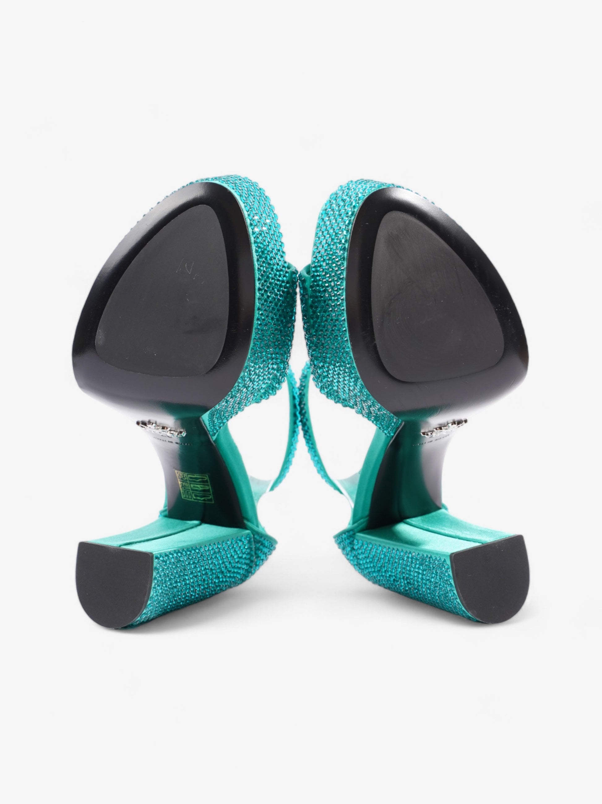 Prada Satin Crystal Platform Sandal 120 Green Sequin EU 37 UK 4