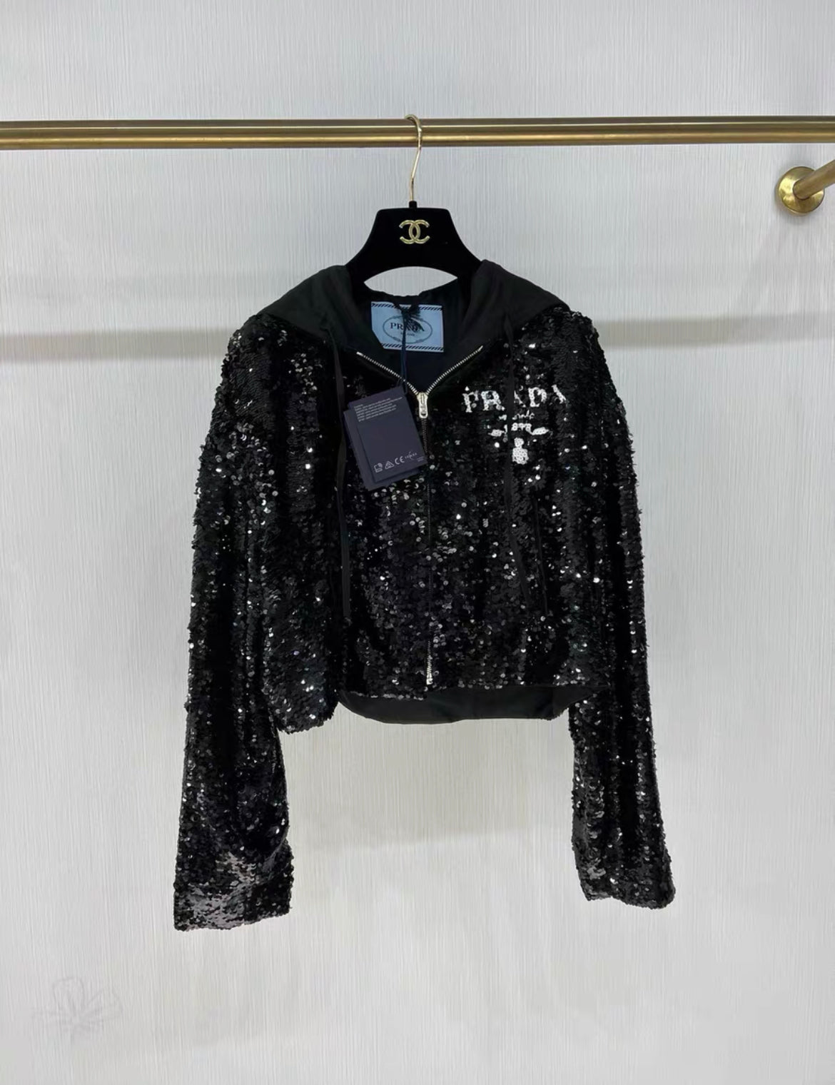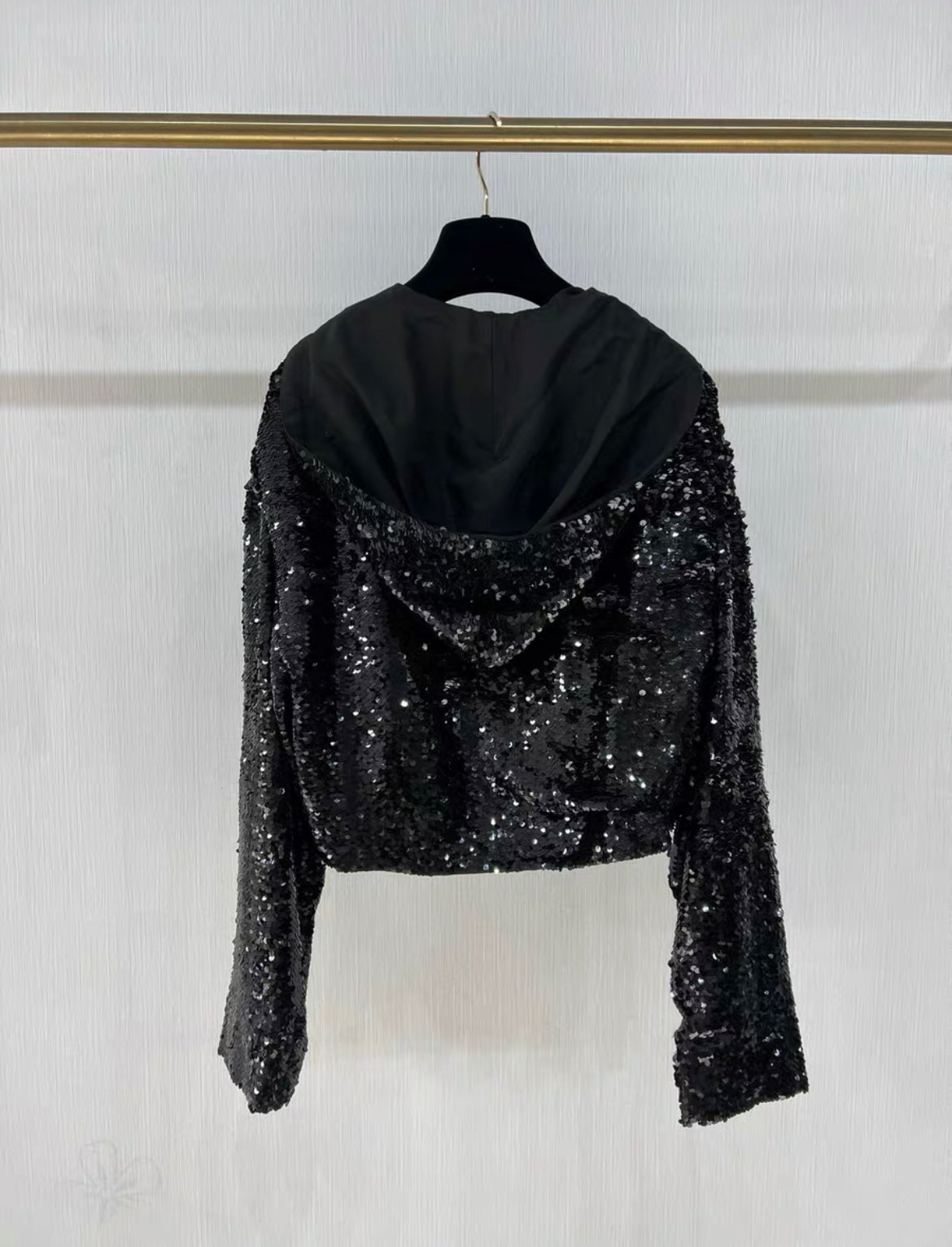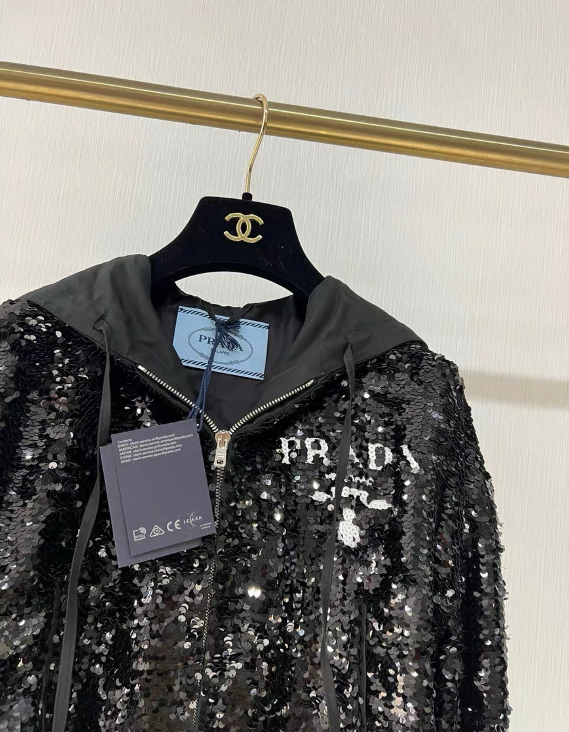 PRADA SEQUIN-EMBELLISHED CHIFFON HOODIE Size 36
