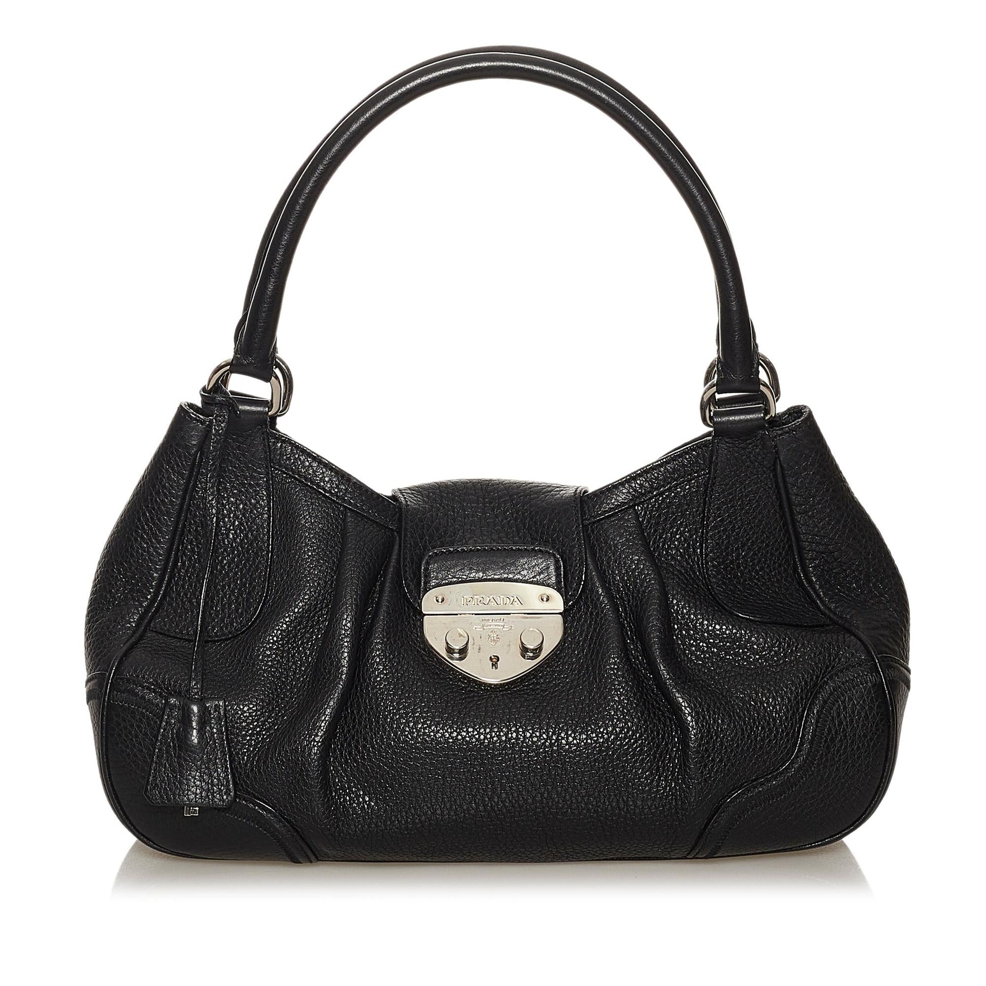 Prada Sound Lock Leather Handbag (SHG-28619)