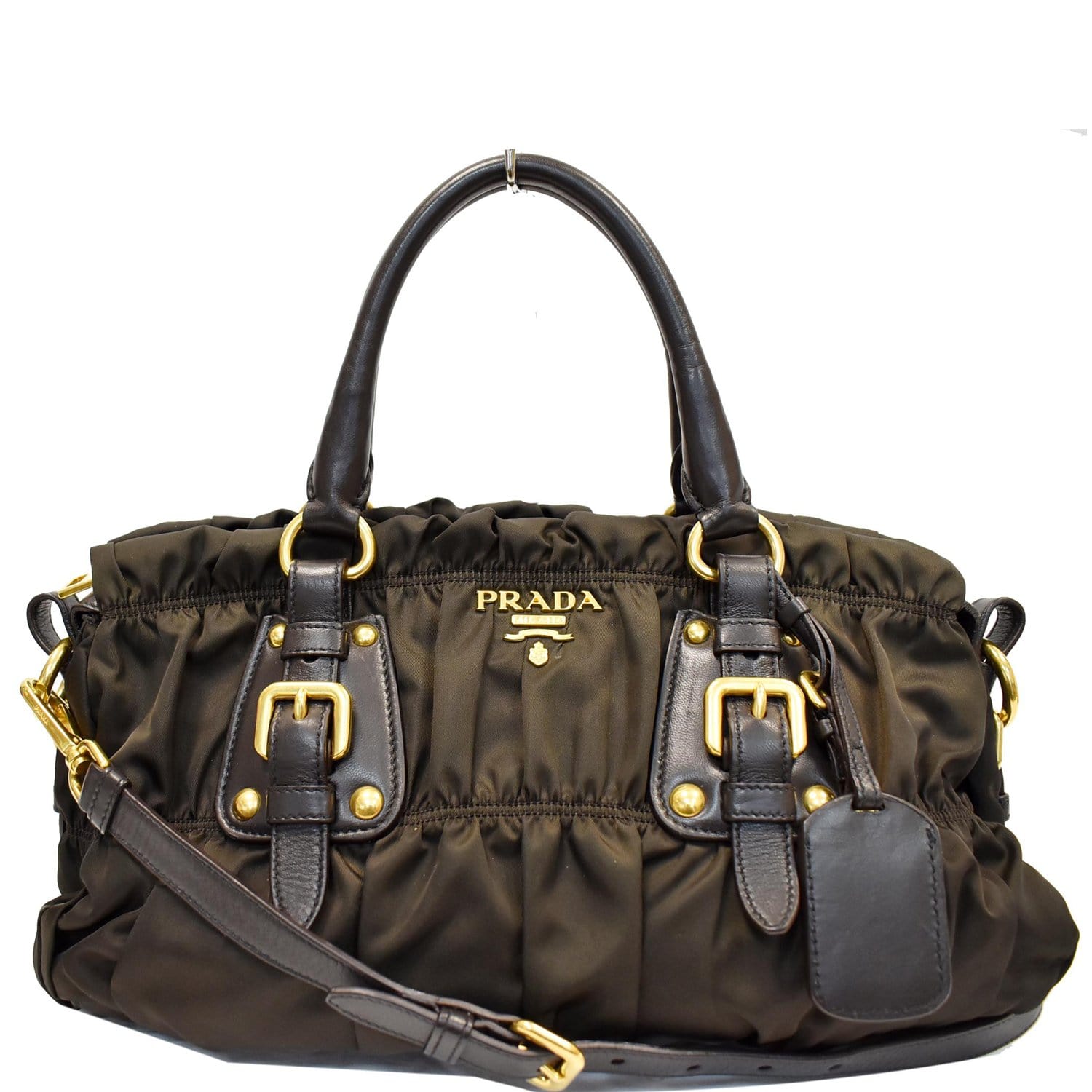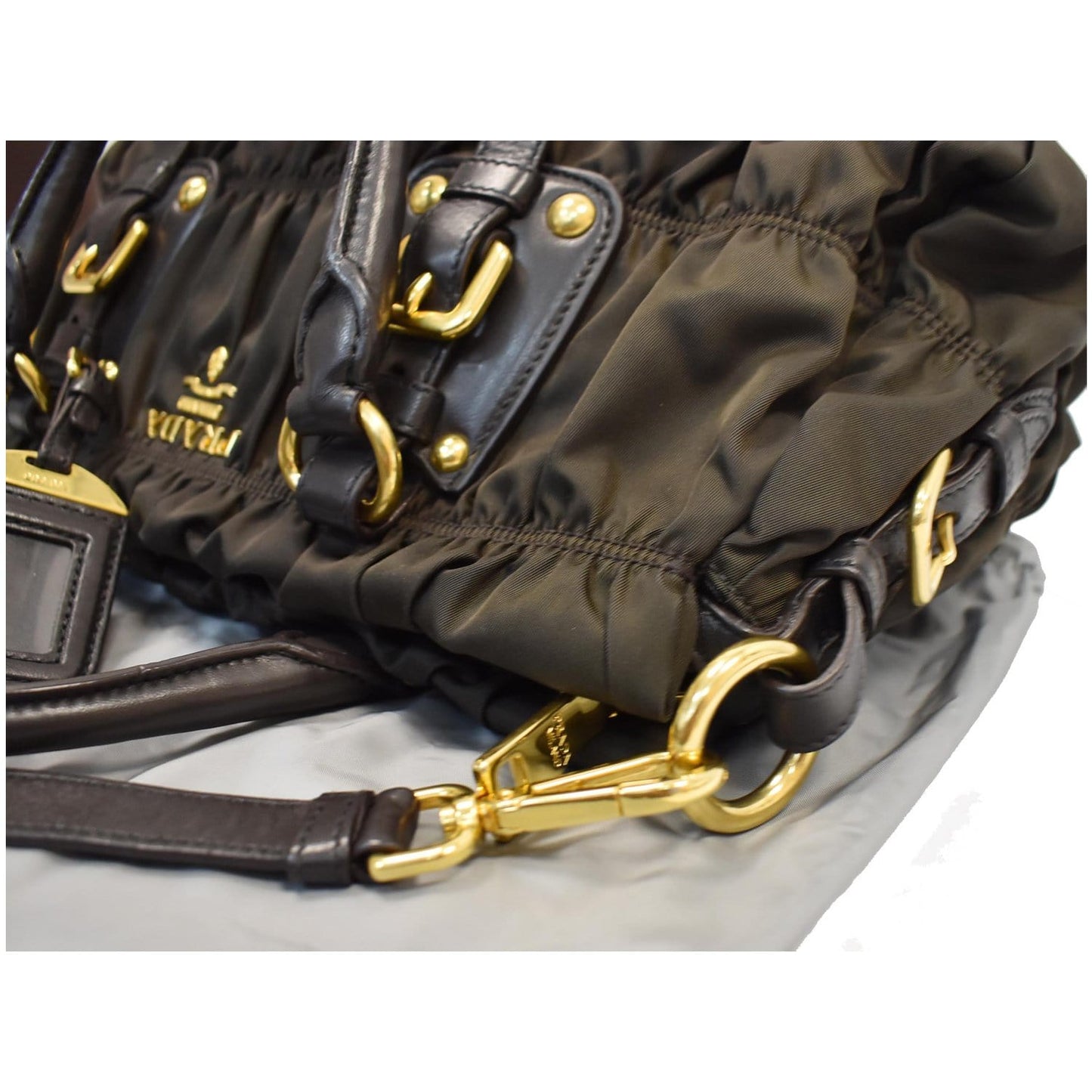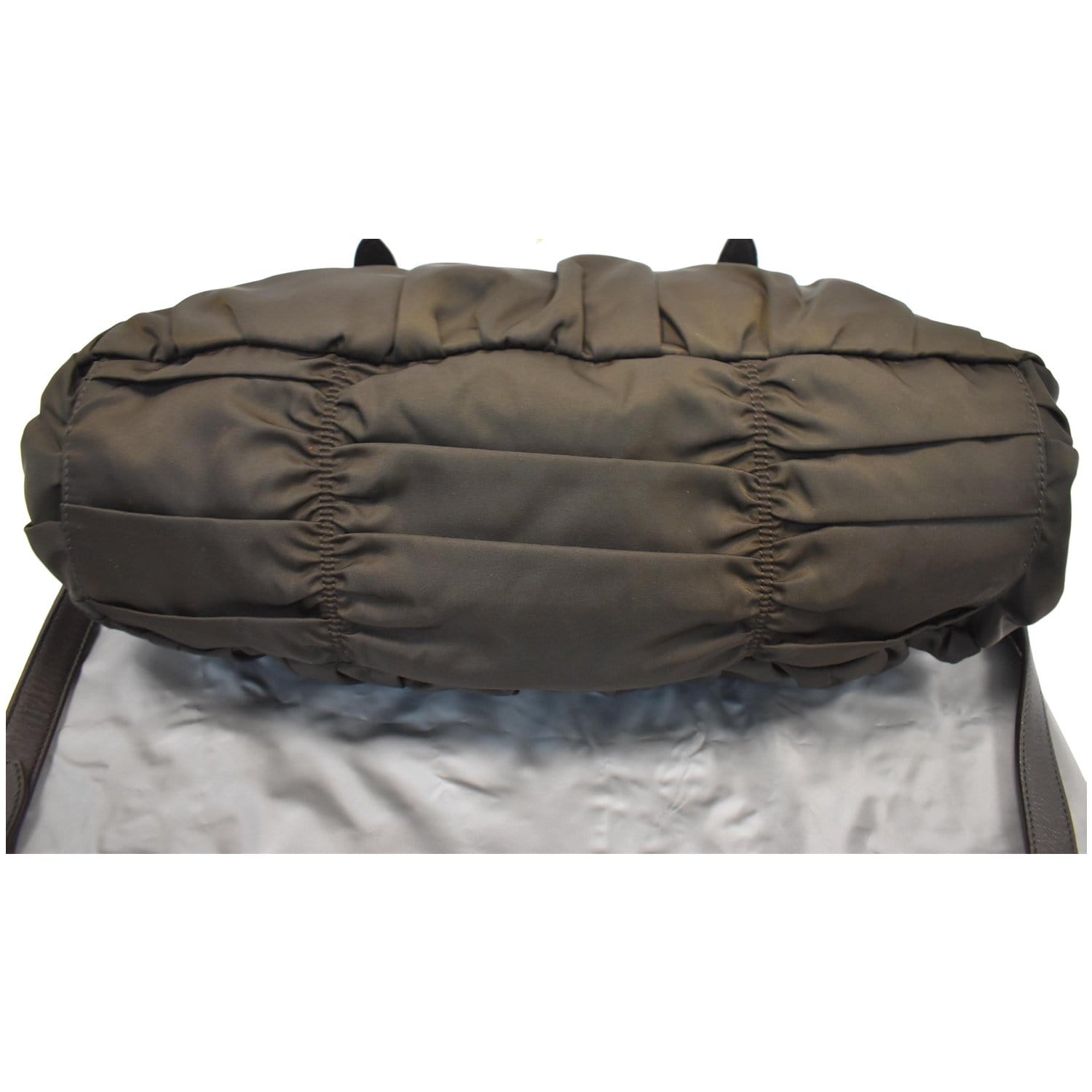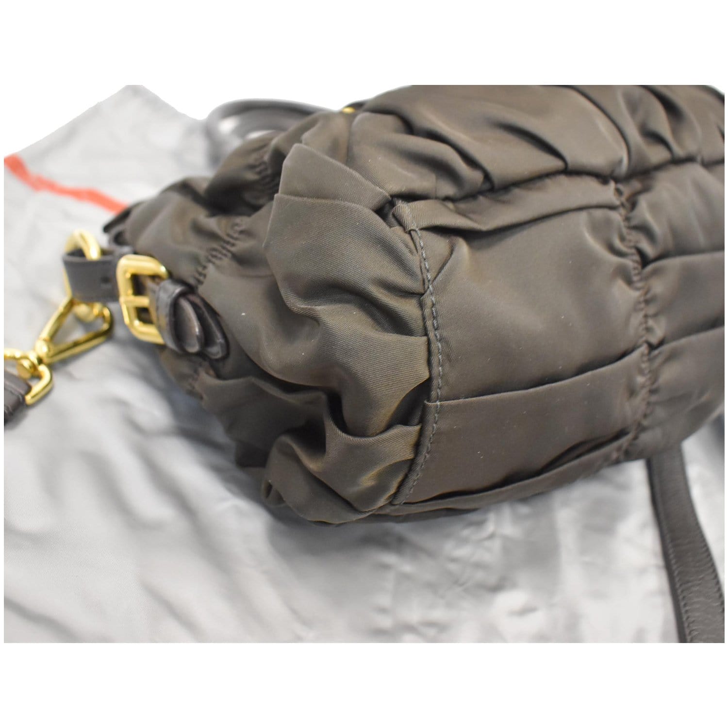 PRADA Tessuto Gaufre Ruched Nylon Leather Shoulder Bag Green
