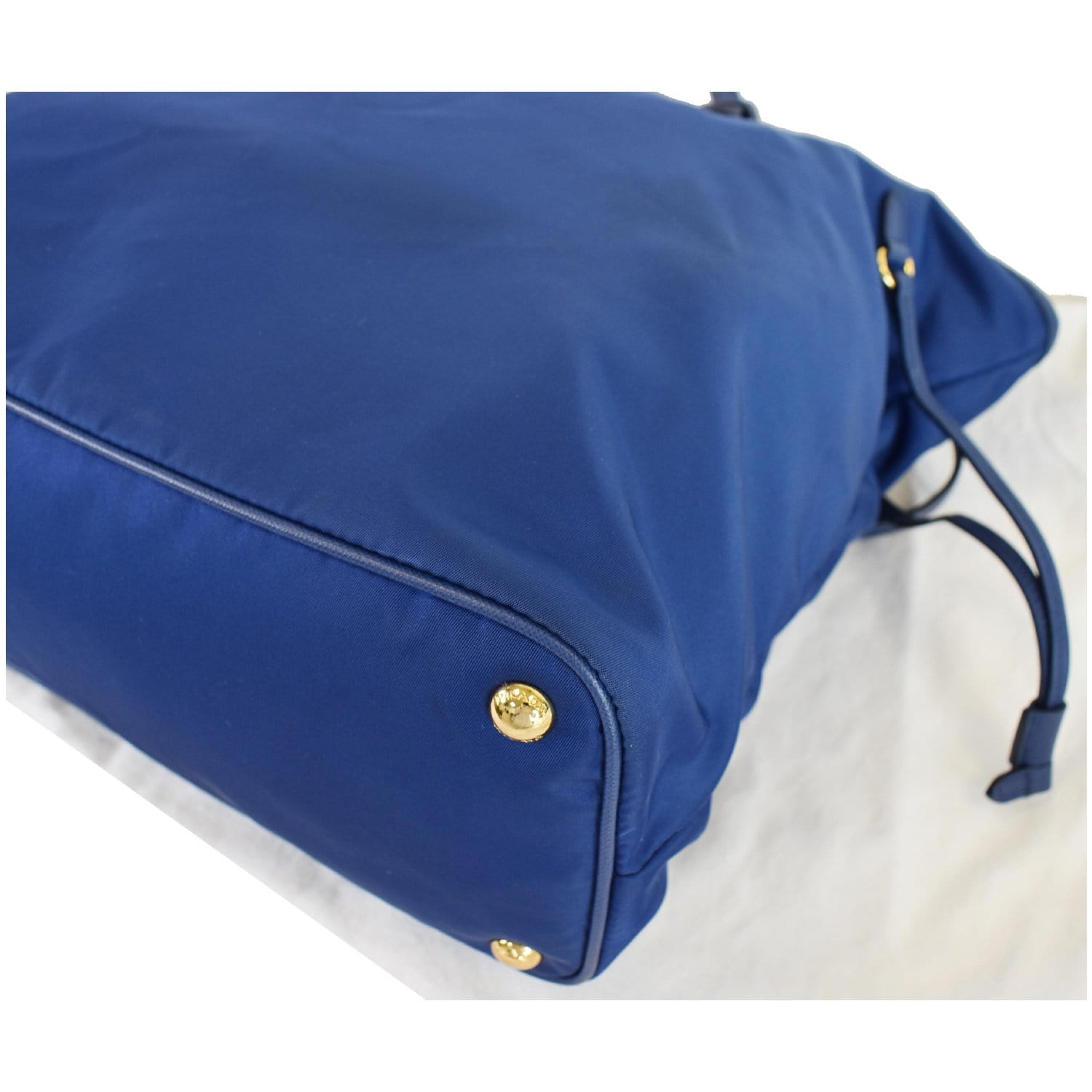 Prada Tessuto Nylon Saffiano Leather Tote Bag Blue