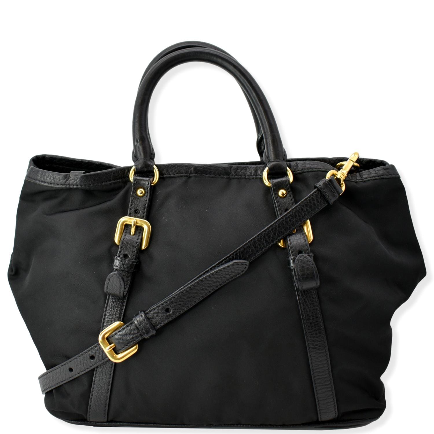 PRADA Tessuto Vitello Daino Nylon Tote Shoulder Bag Black