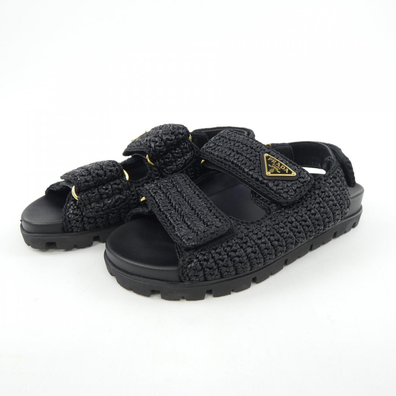 Item name : Prada Triangle Logo Crochet Raffia Sandals