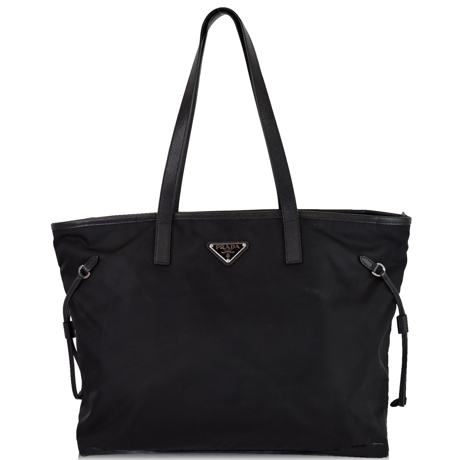 PRADA Vela Side-Cinch Nylon Tote Shoulder Bag Black