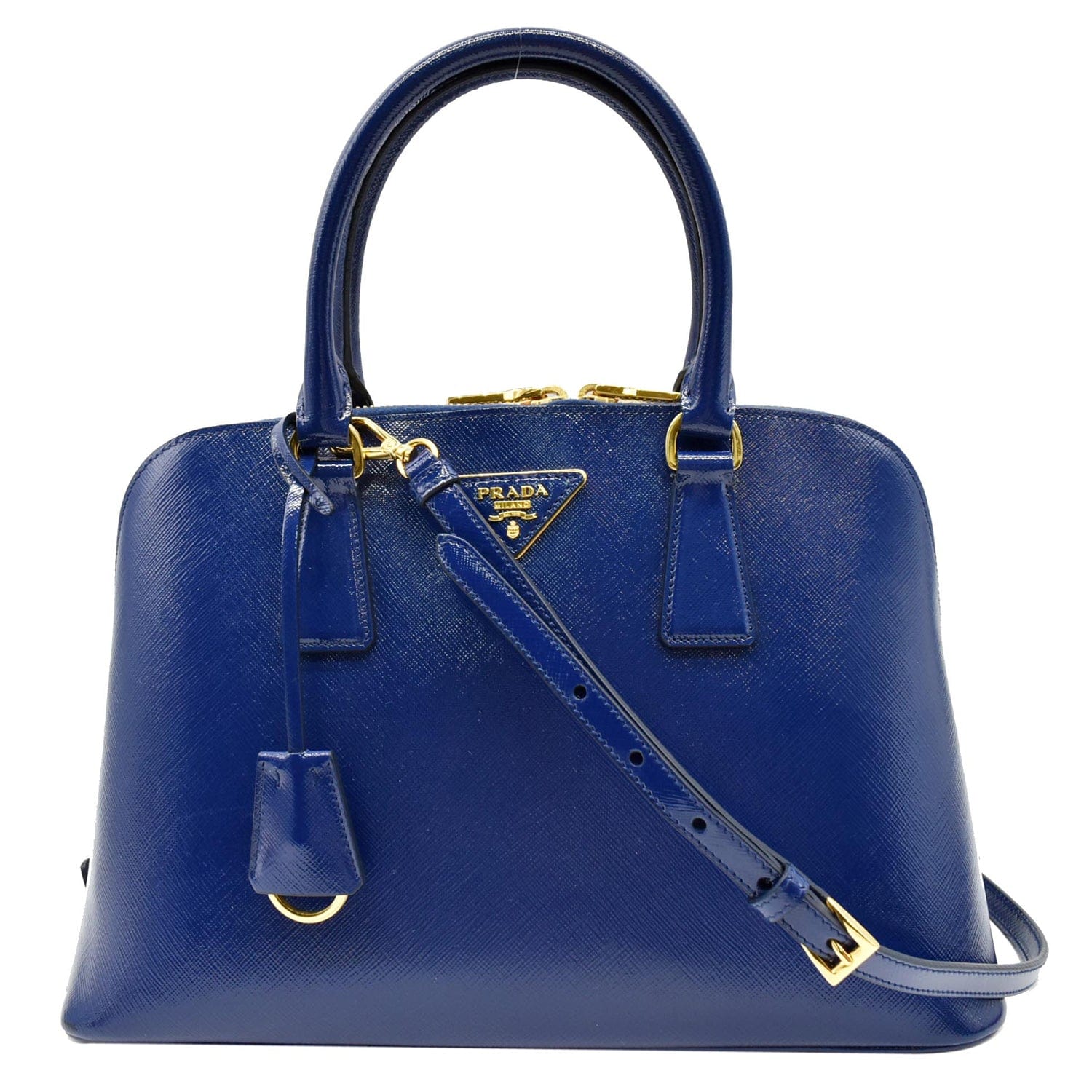 PRADA Vernice BL0837 Saffiano Leather Top Handle Bag Blue
