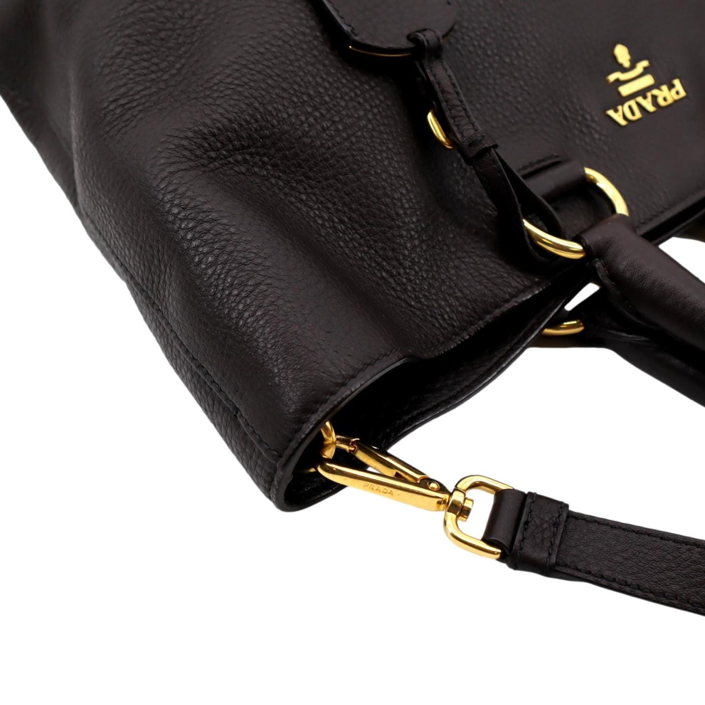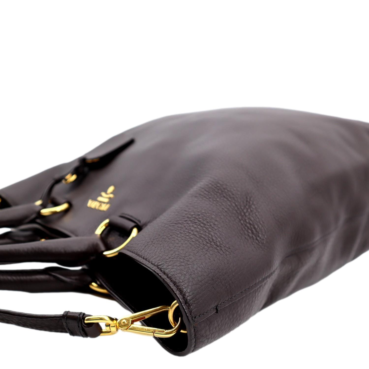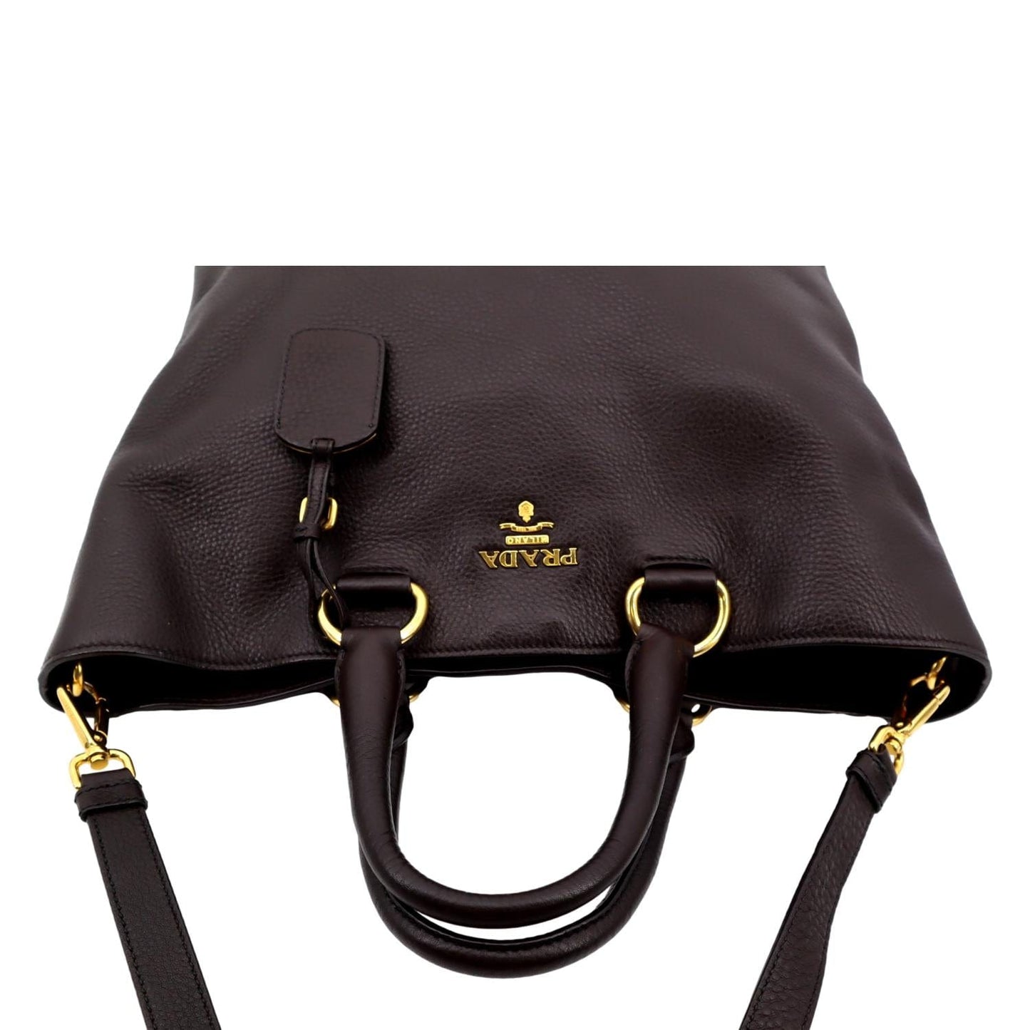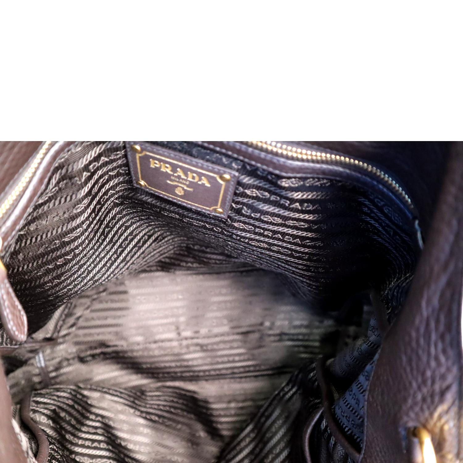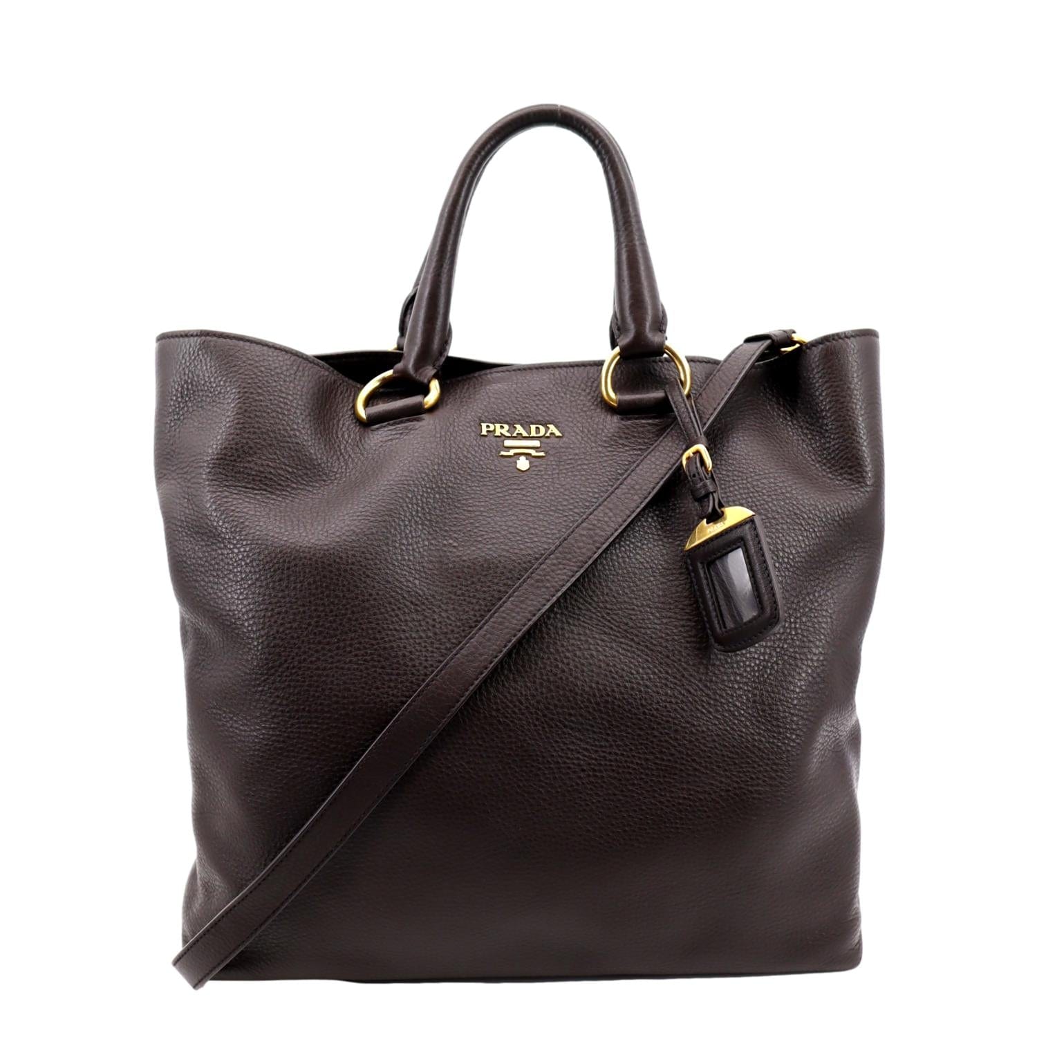 PRADA Vitello Daino Leather Tote Shoulder Bag Dark Brown