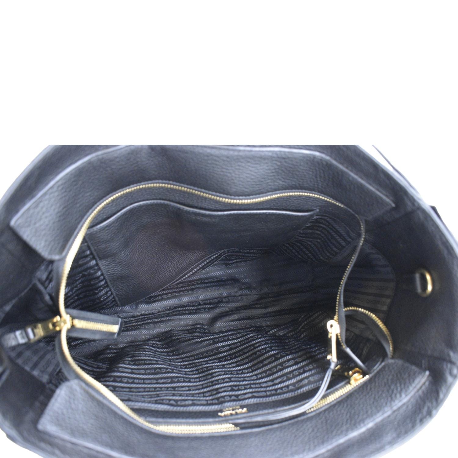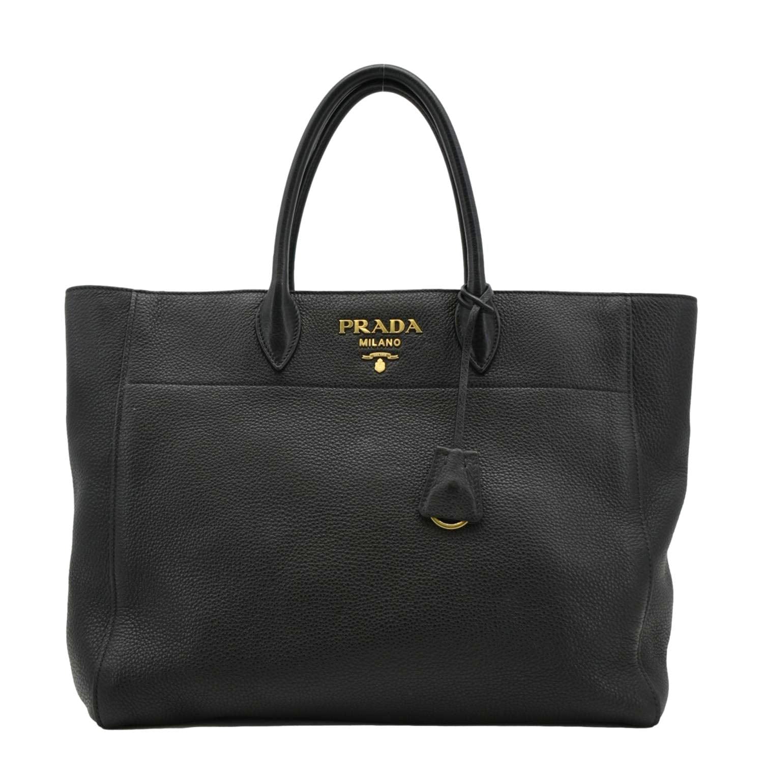PRADA Vitello Daino Large Leather Black Tote Bag