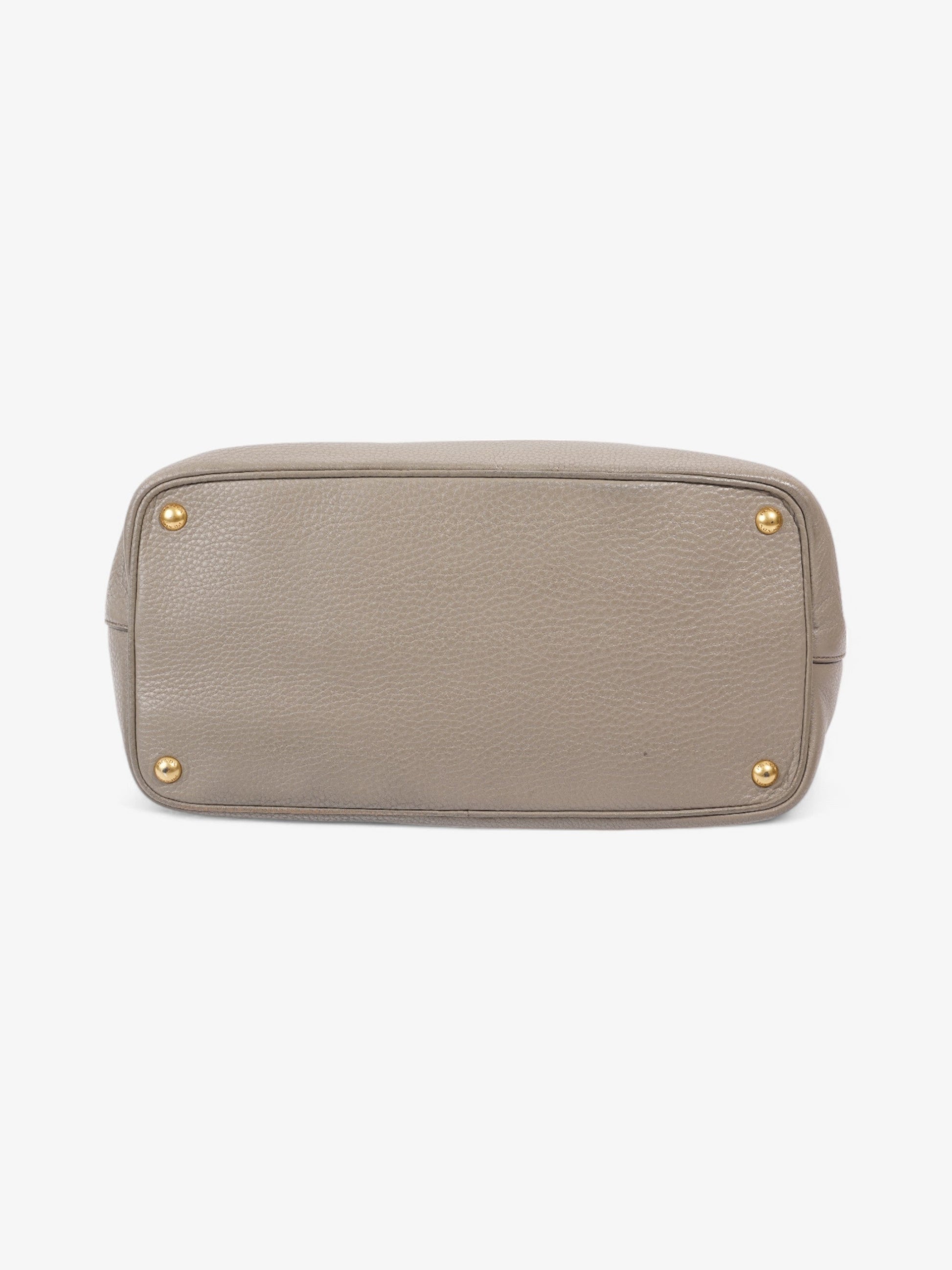 Prada Vitello Daino Middle Zip Tote Grey Leather