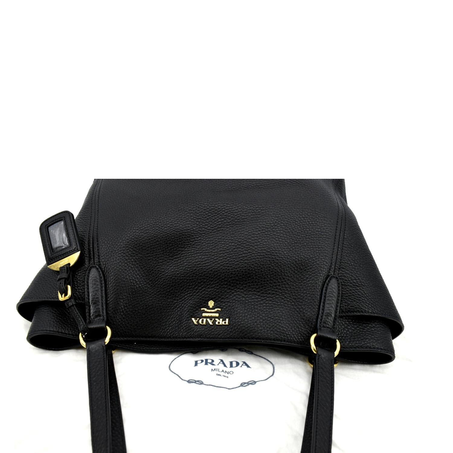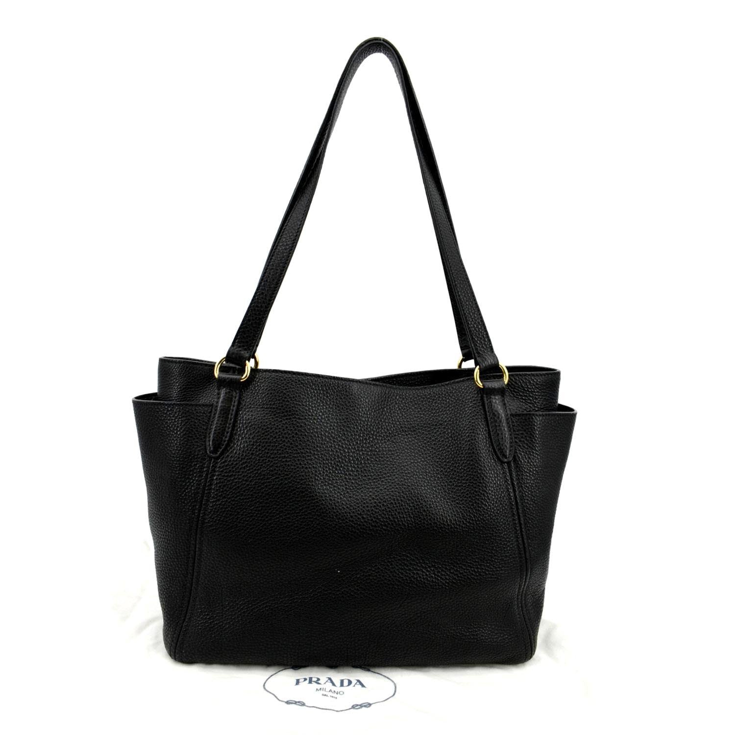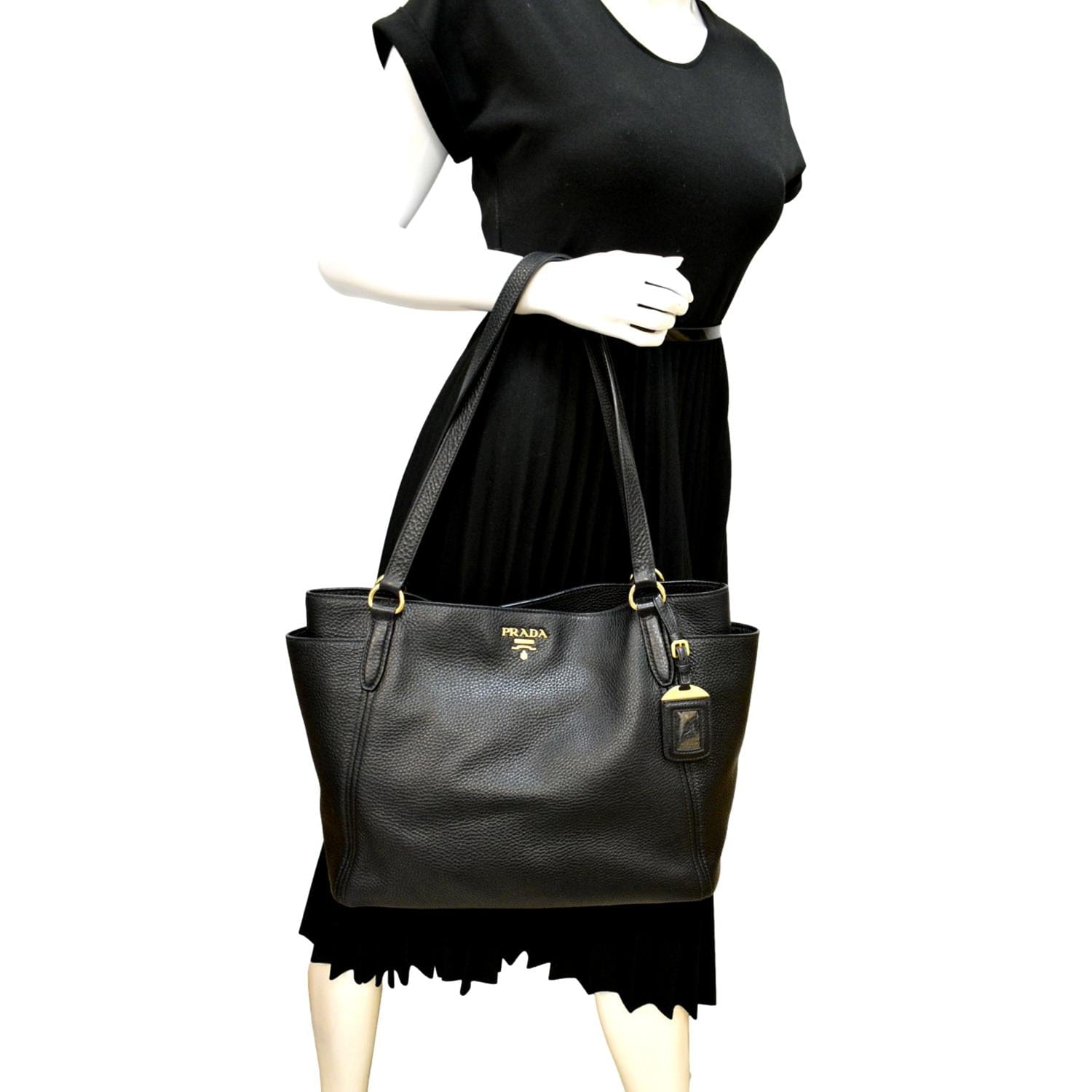 PRADA Vitello Daino Side-Pocket Leather Tote Shoulder Bag Black