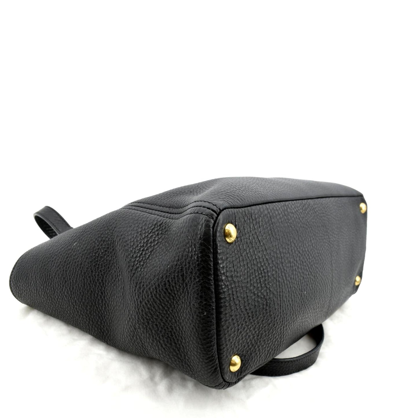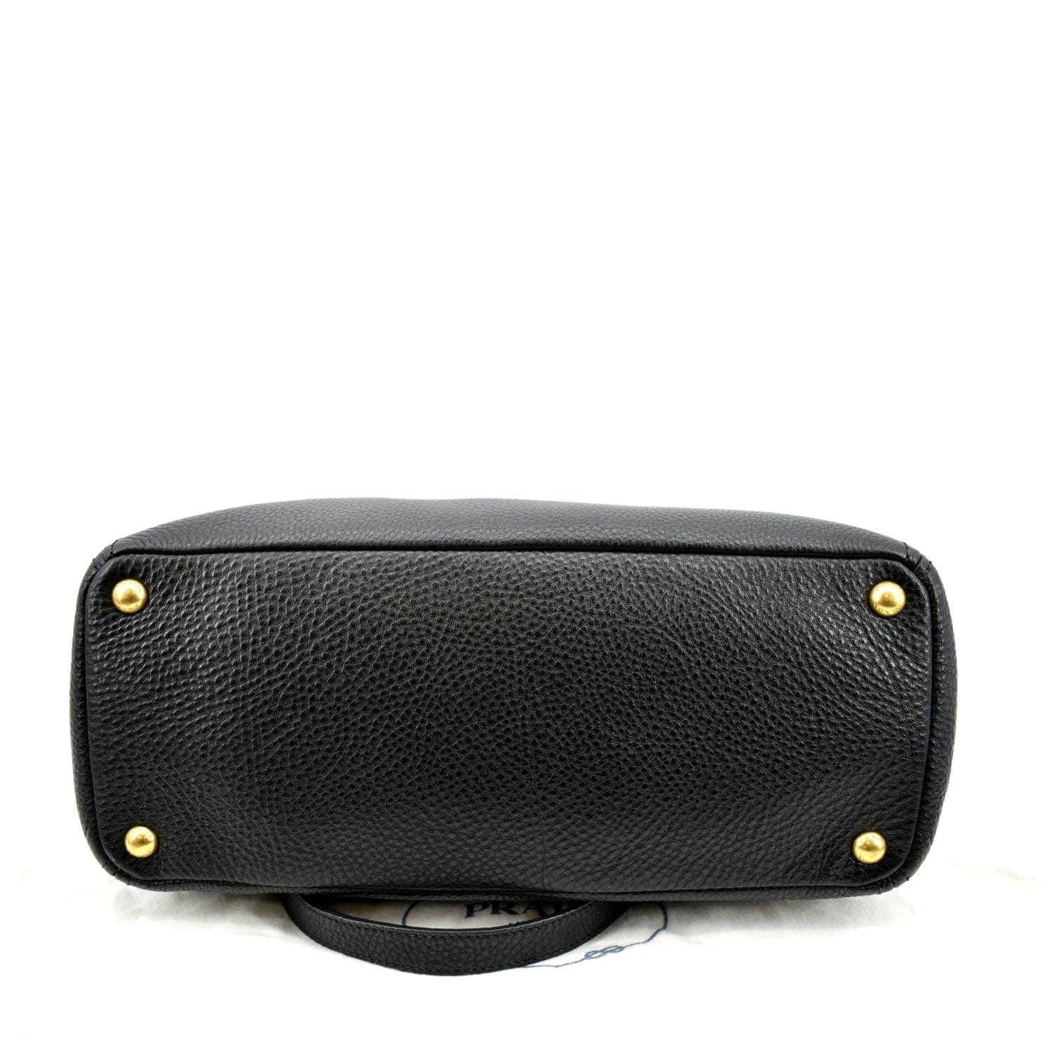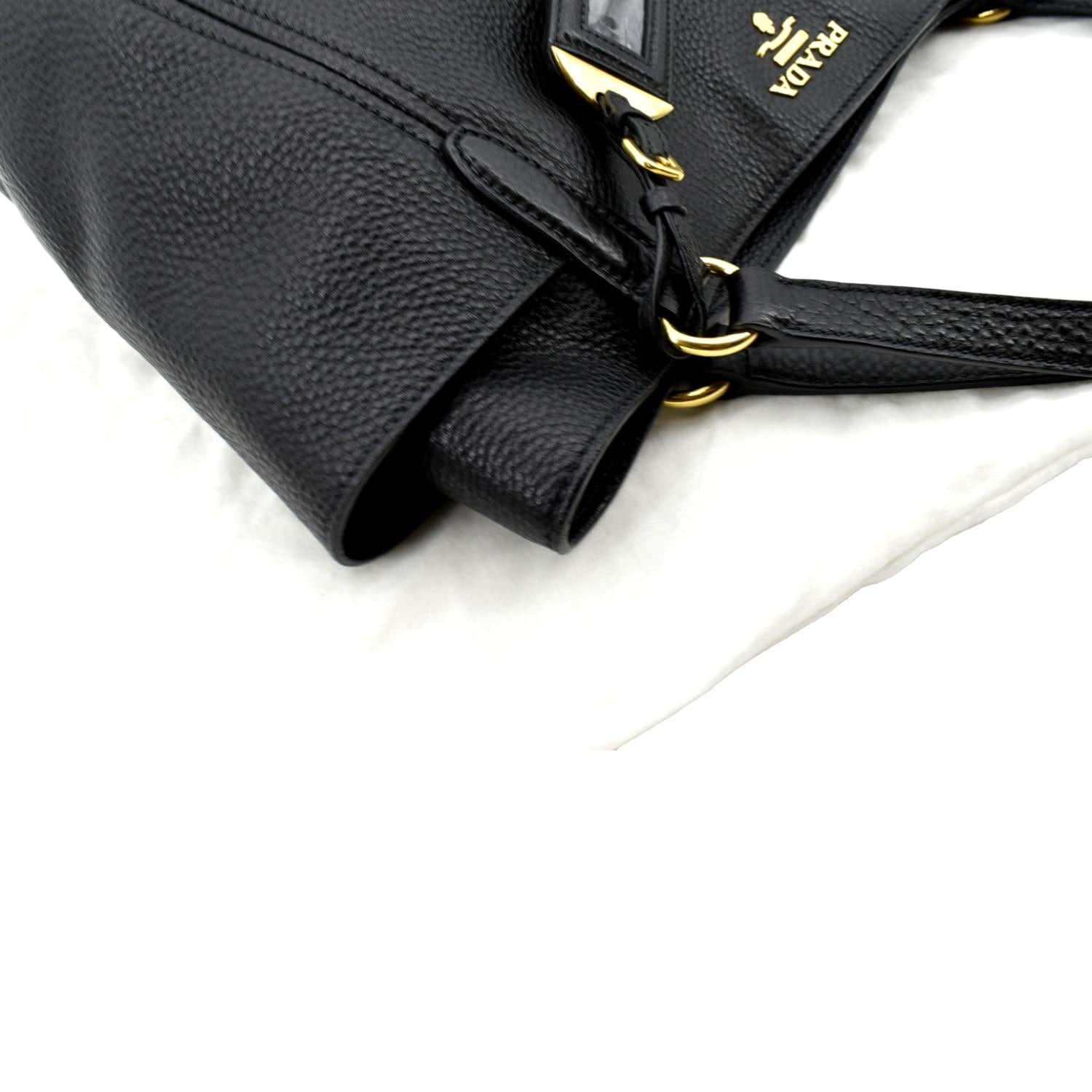 PRADA Vitello Daino Side-Pocket Leather Tote Shoulder Bag Black