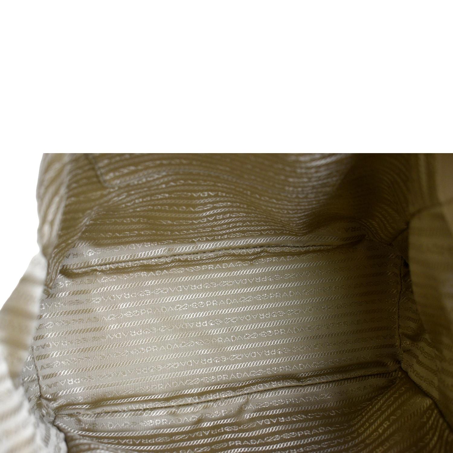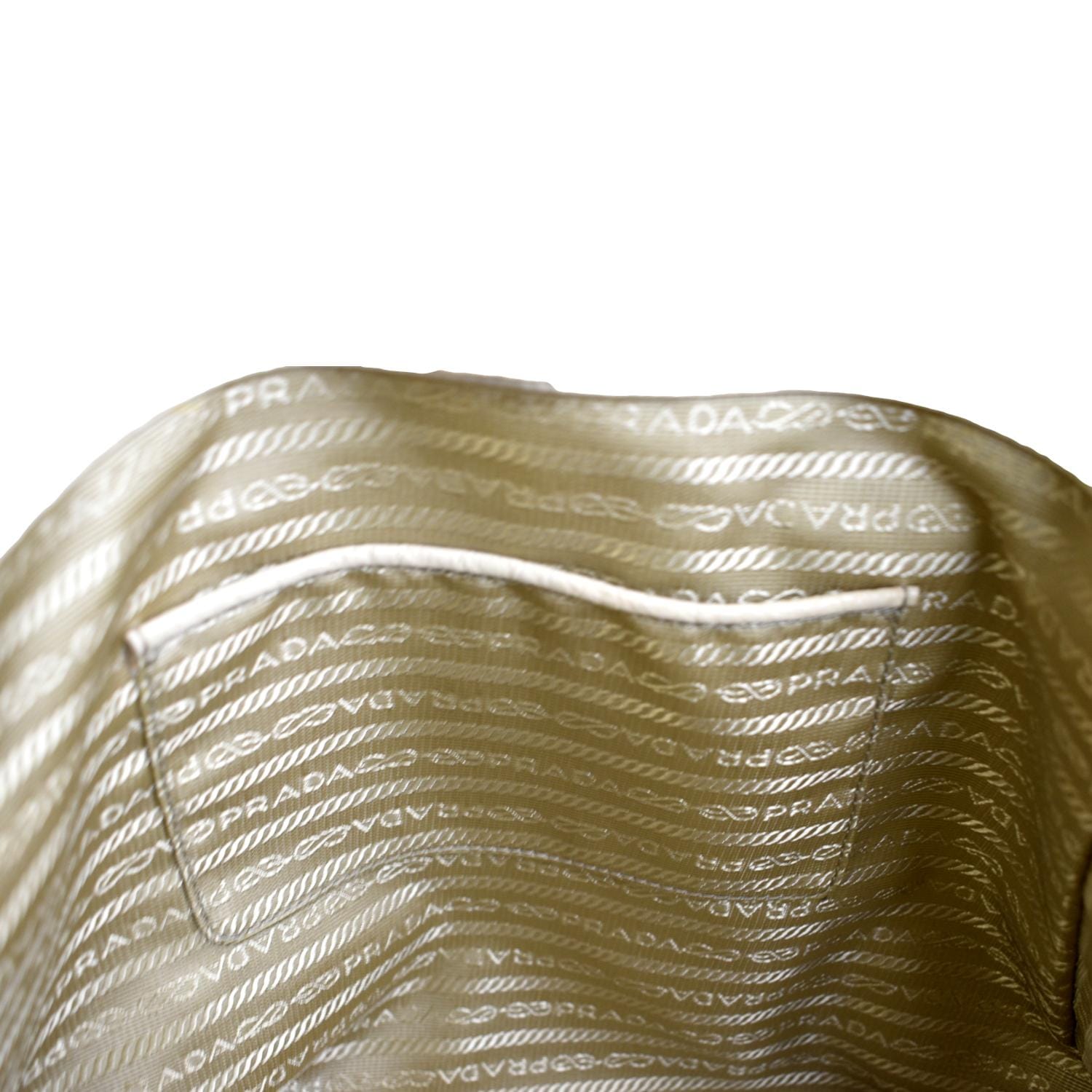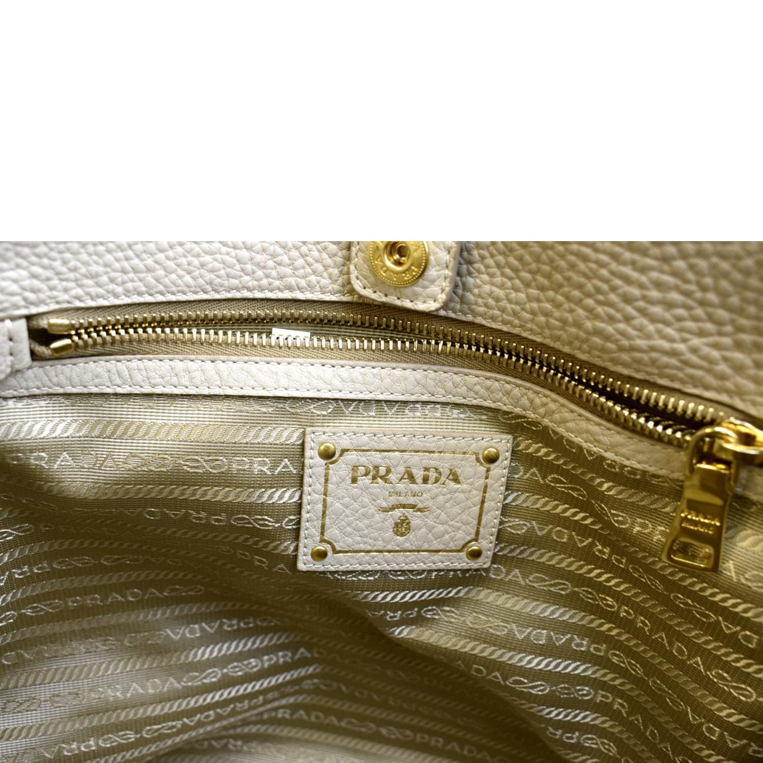 PRADA Vitello Daino Side-Pocket Leather Tote Shoulder Bag Beige
