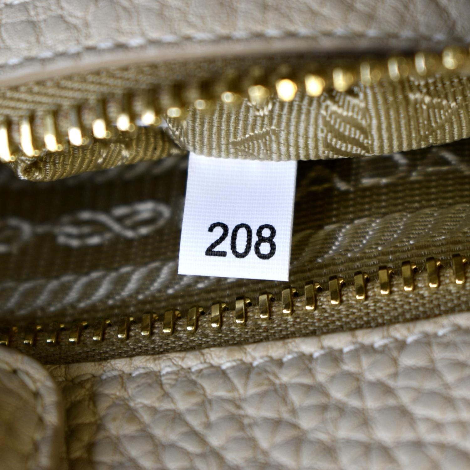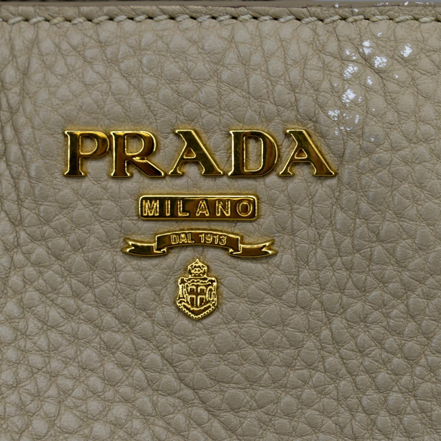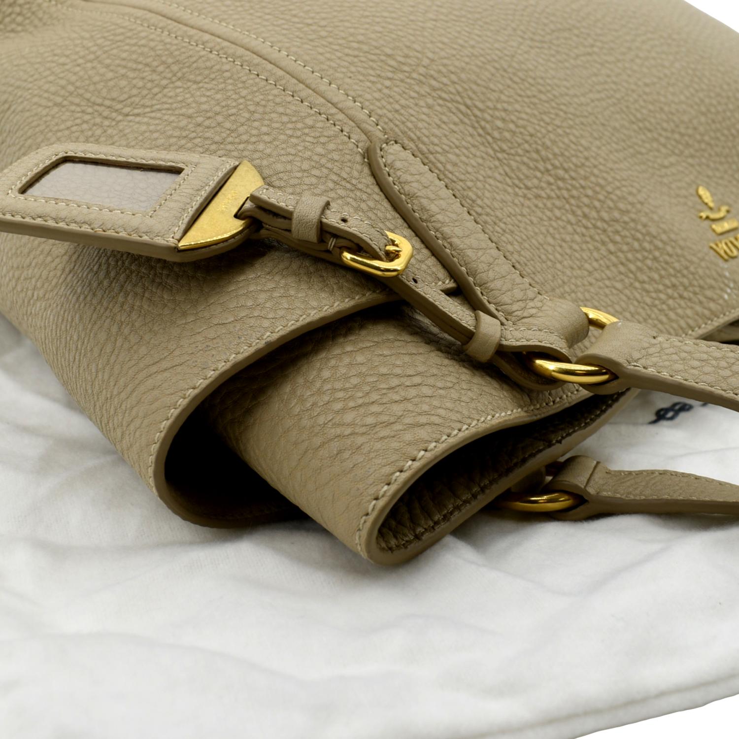 PRADA Vitello Daino Side-Pocket Leather Tote Shoulder Bag Beige