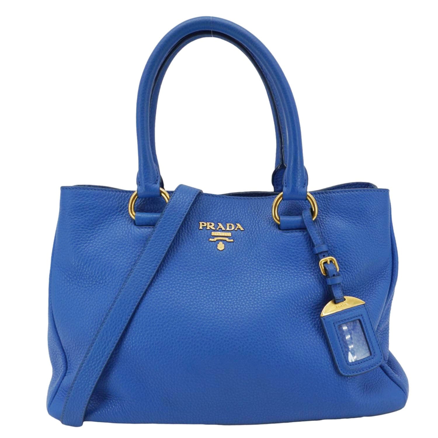 PRADA Vitello Daino Leather Tote Shoulder Bag in Blue