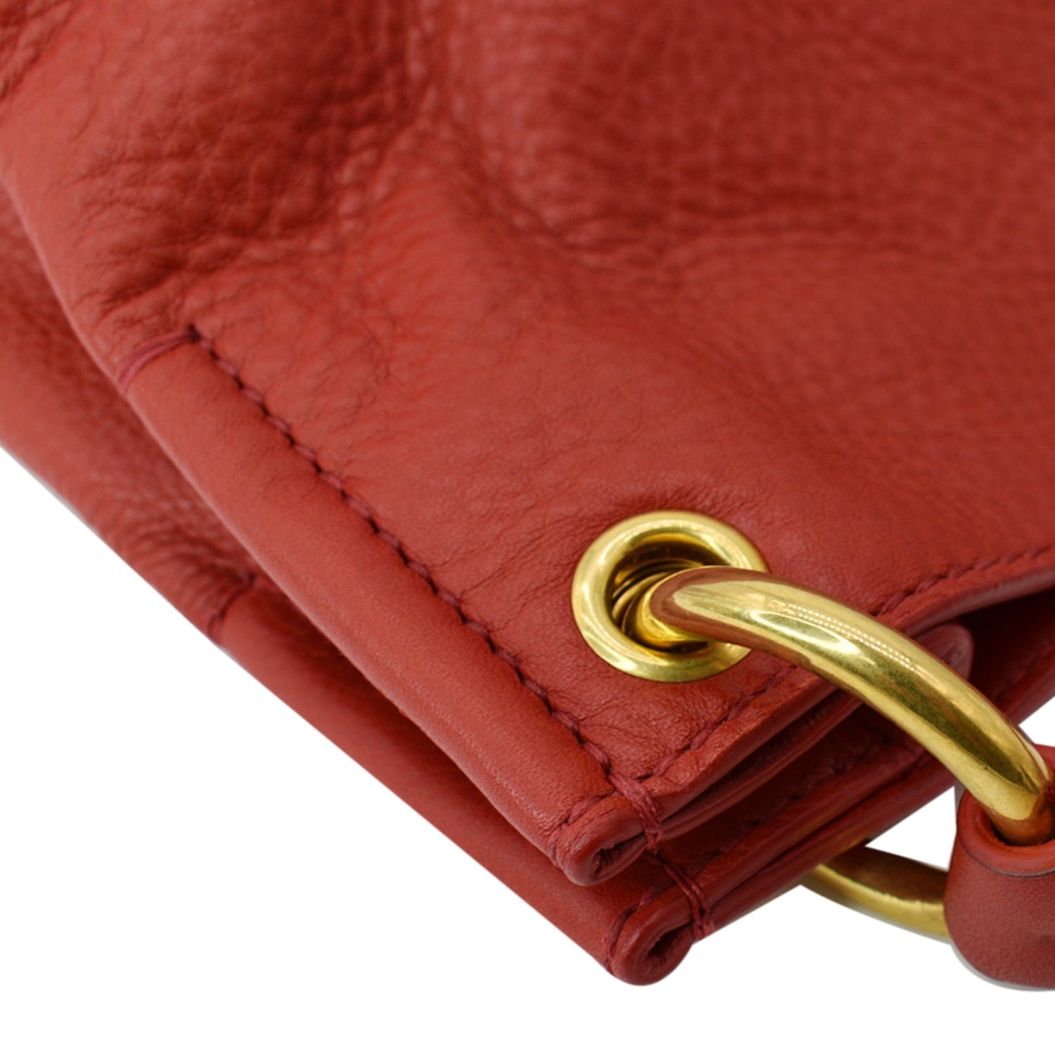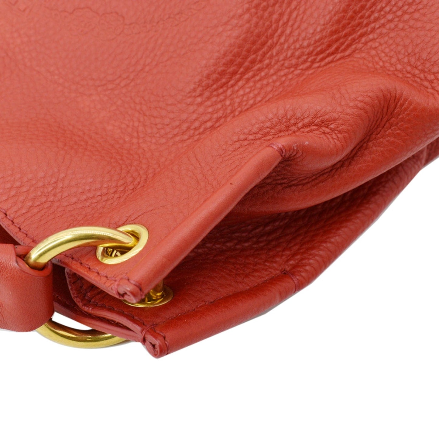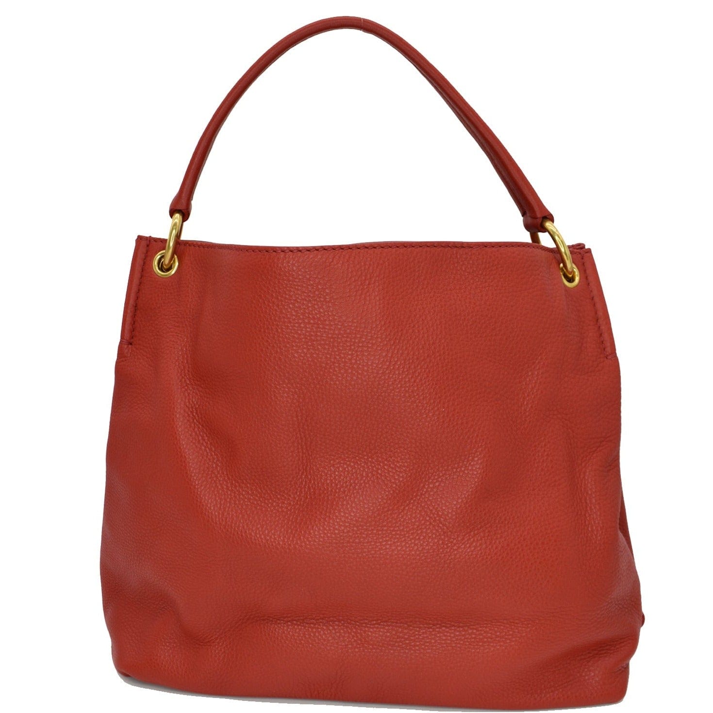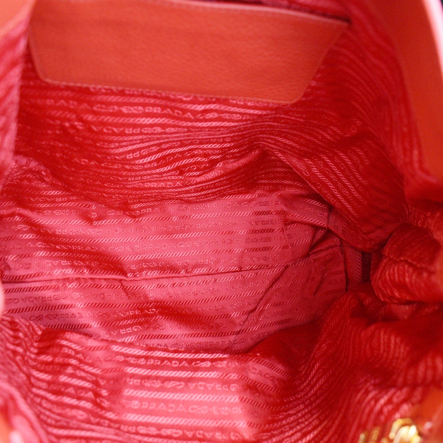 PRADA Vitello Phenix Leather Embossed Logo Hobo Bag Red