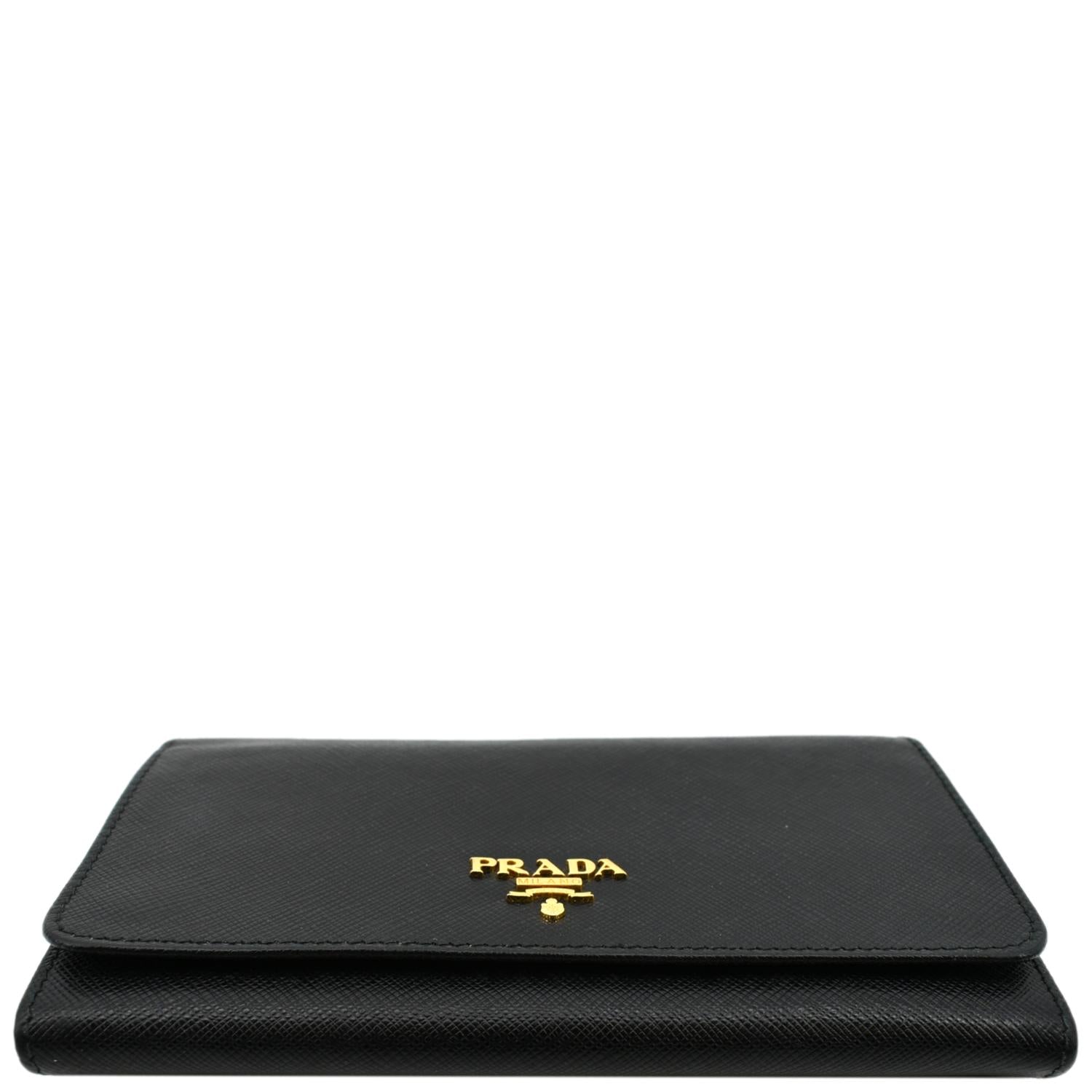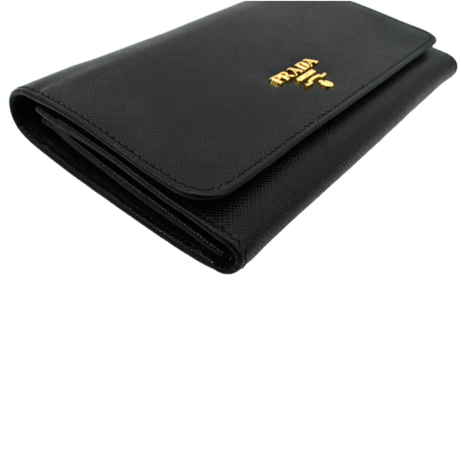 PRADA Continental Flap Saffiano Leather Long Wallet Black