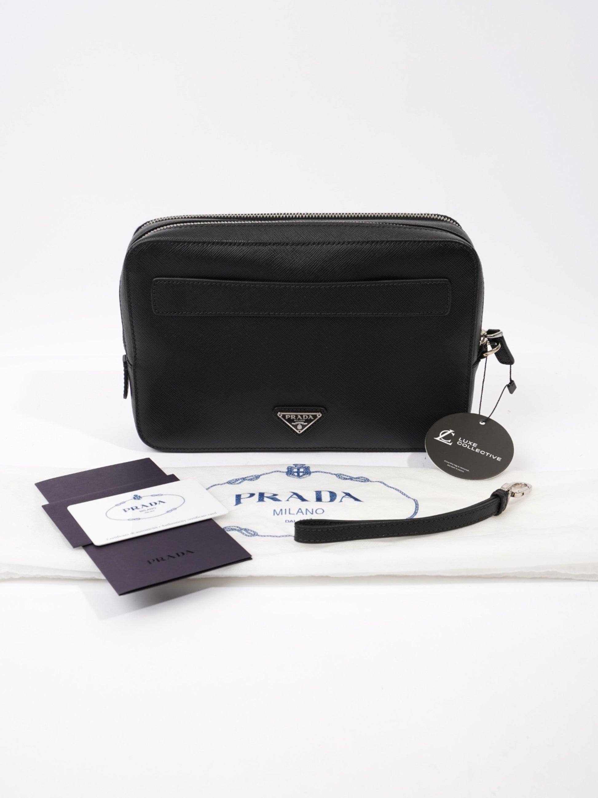 Prada Zipped Clutch Black Saffiano Leather