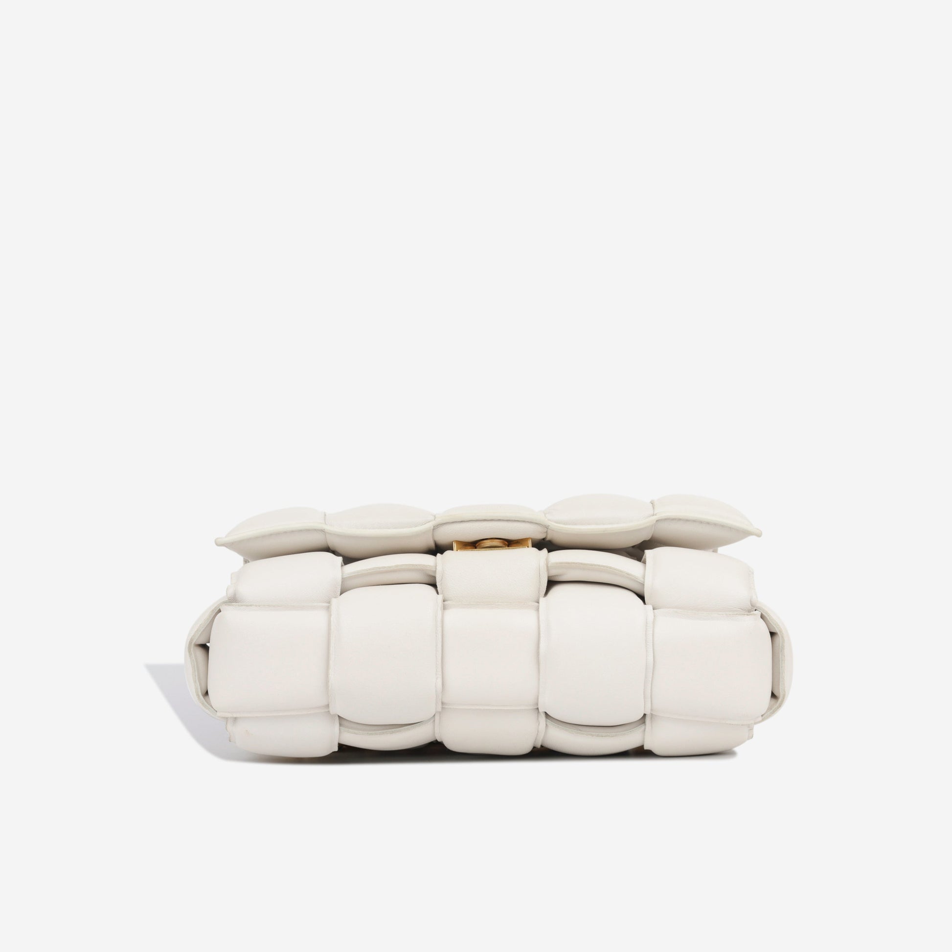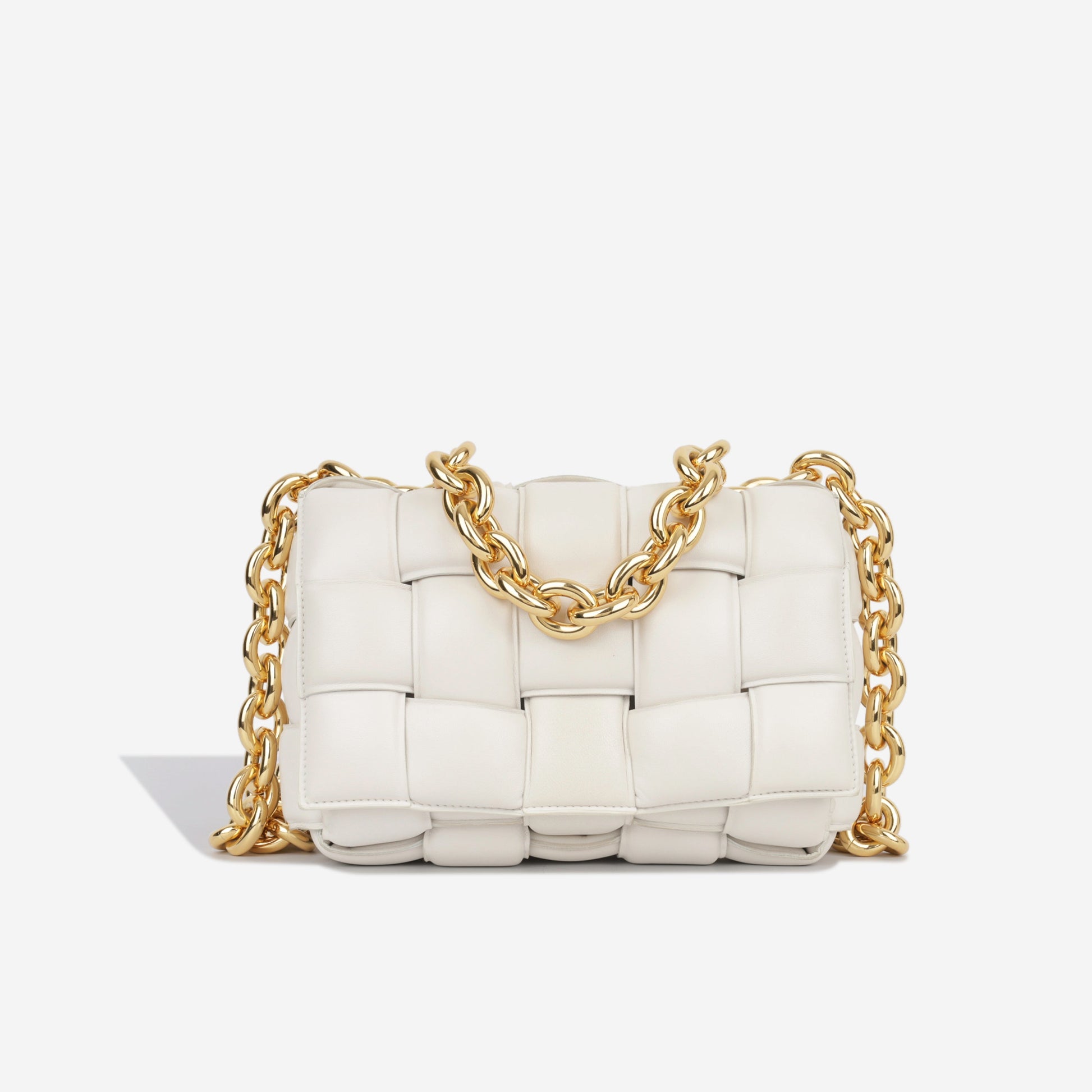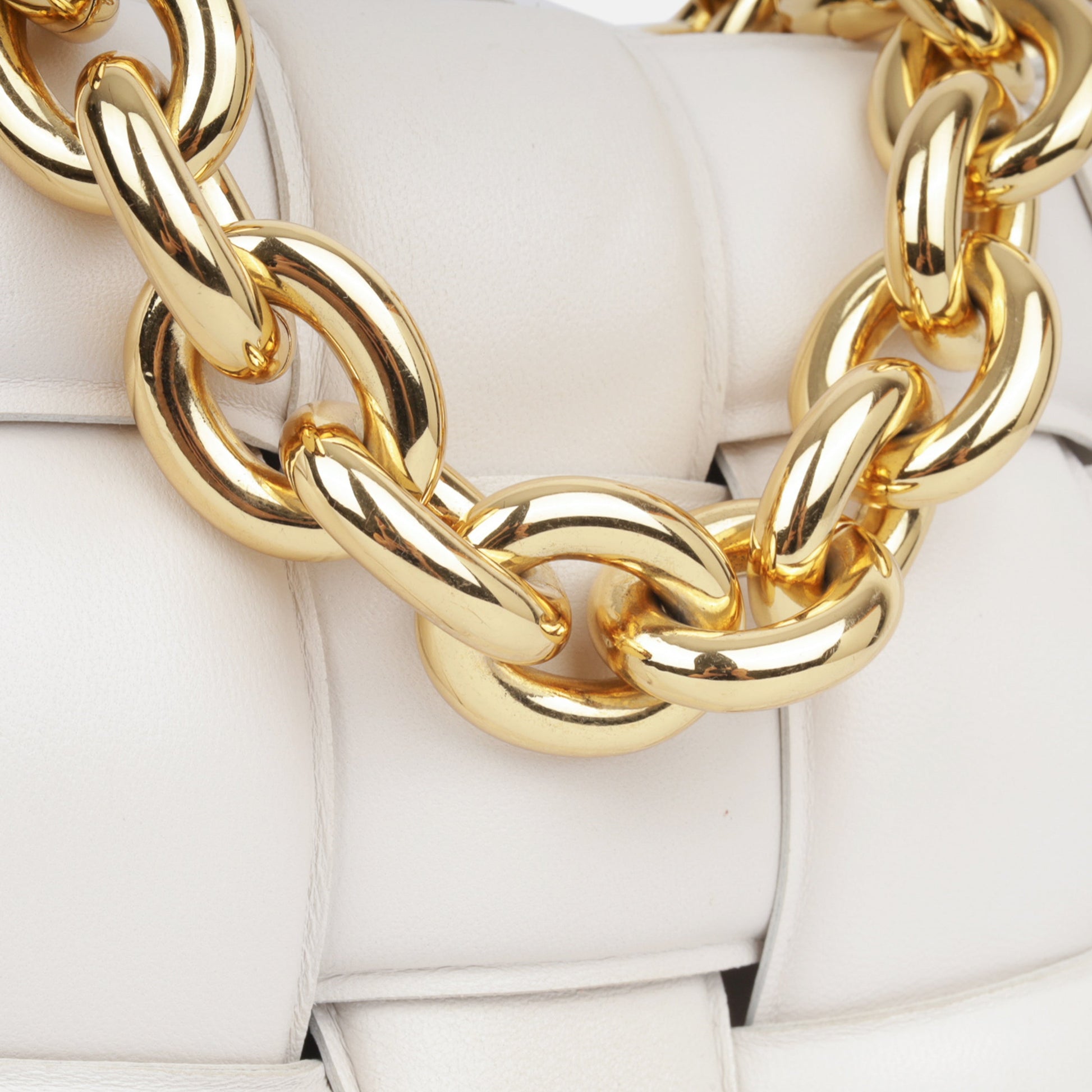 Bottega Veneta present a playful, inventive and hugely popular twist to their classic enlarged intrecciato weaving technique for their 2020 hit, the Chain Cassette Bag. The Chain Cassette offers a modern and functional interpretation of the classic woven crossbody bags typically offered by the brand. Carefully crafted in lambskin leather, in a soft, boxy, structured silhouette, this bag offers practicality as well as an abundance of it-bag value.