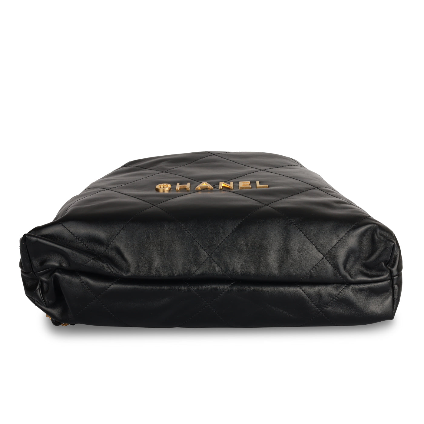 Carefully crafted from shiny calfskin leather, Chanel presents their 22 Backpack. The chicest item for the lady that wants to carry everything around with them, this bag features Chanels classic interwoven back straps along with top handles to carry it handheld. This piece from 2022 is a well worthy addition to any luxury handbag collection.