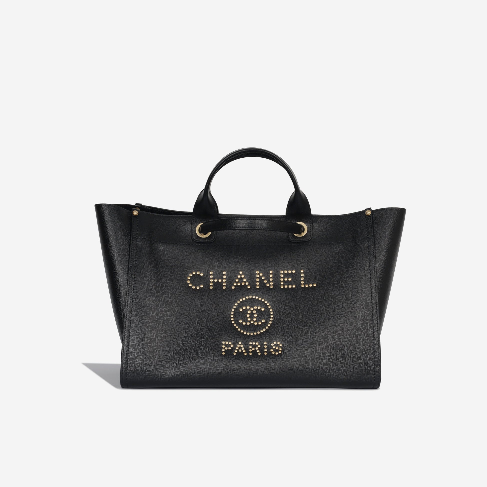 Carefully crafted from black caviar leather with gold detailing, the Chanel Deauville handbag is beyond stunning. Caviar leather is durable and great for a tote bag that will be used for carrying heavy or a lot of items. It's spacious enough to hold everything you would need throughout the day, the Deauville is suitable for travelling, a day at the beach or just running errands.