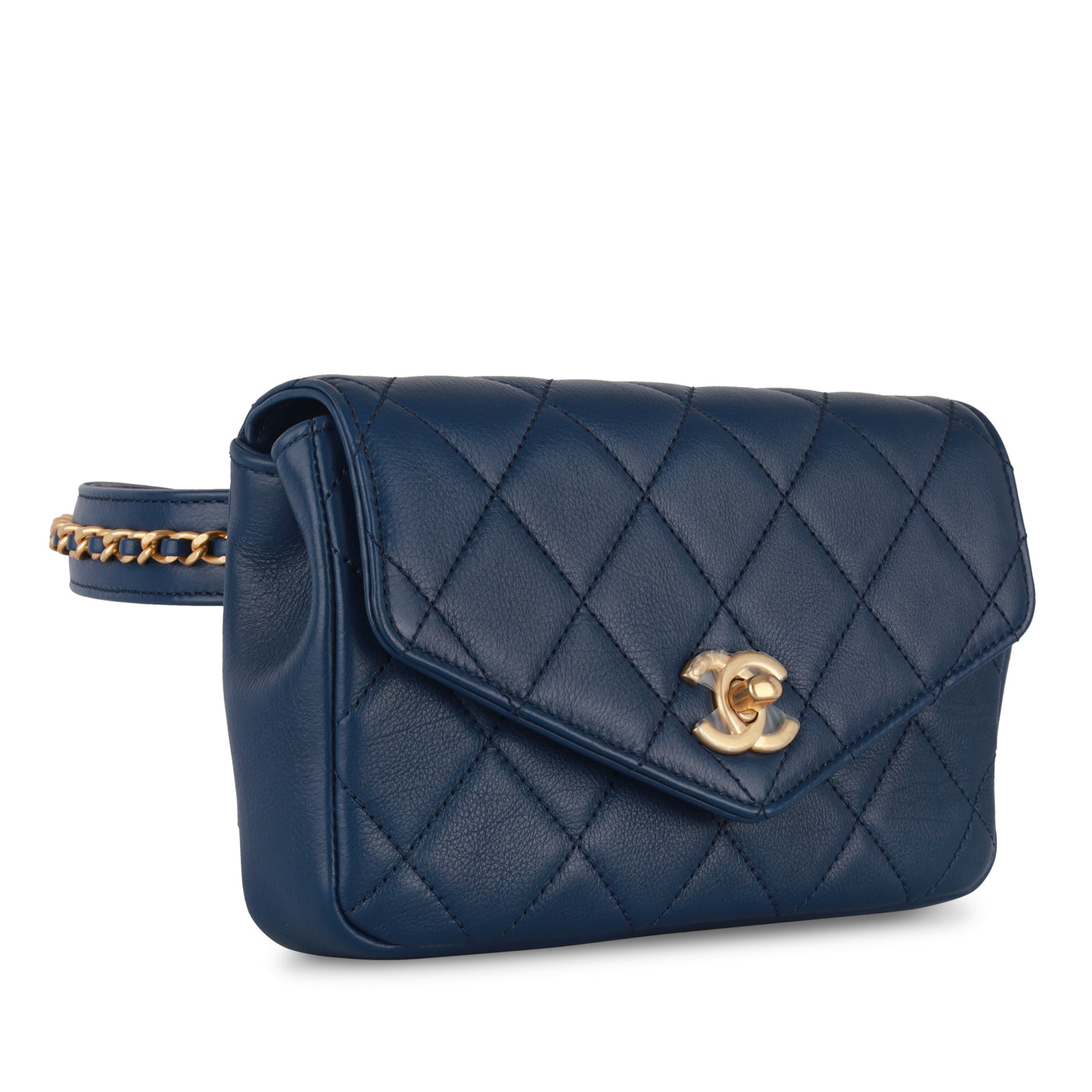 This little piece is crafted from durable navy goatskin leather and accentuated by champagne gold-tone hardware. It is neat and structured, features an envelope flap and the brand’s signature CC twist-lock. No matter the time or place, this stunning belt bag is a suitable companion to accompany you, handsfree, wherever you go.