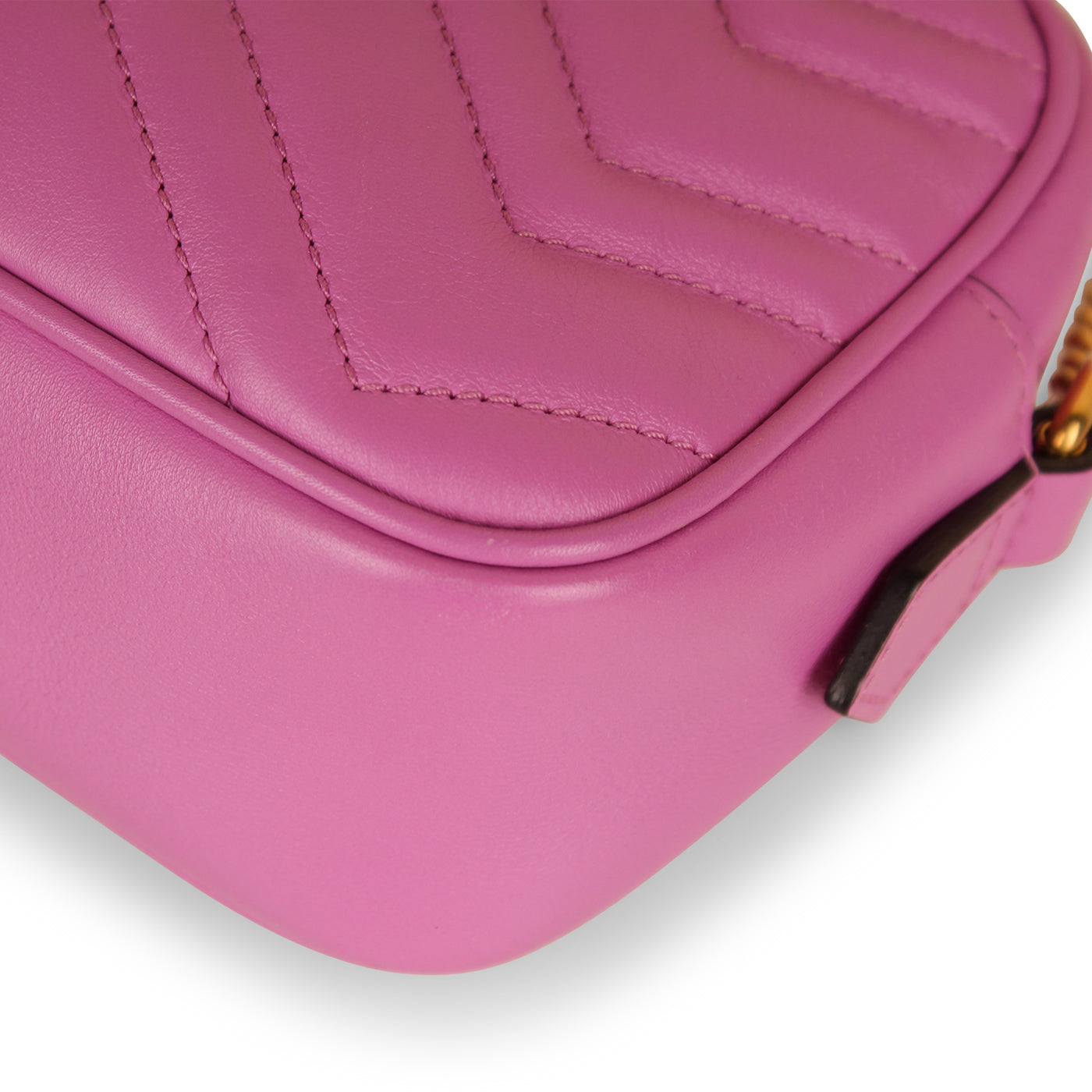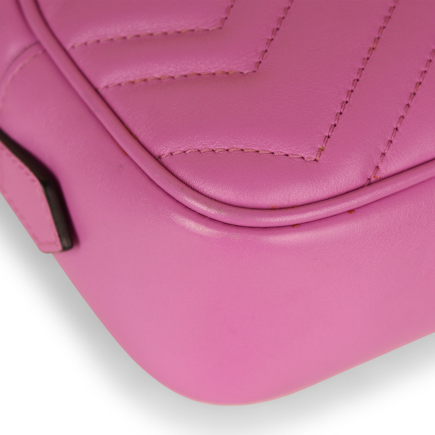 If you don't know Gucci's Marmont collection, then you may or may not need to leave the house more often. Under the creative direction of Alessandro Michele, the Marmont line, which features flap bags, camera bags and bumbags like this one, took the world by storm upon its debut. The Mini Marmont is the ideal accessory for anyone who wants to go handsfree about their day. Carefully crafted in hot pink chevron leather and complimented by a prominent antique gold-tone GG logo, this bag allows you to carry all your every day essentials in style and without hassle. With its ability to be worn across your body, this bag is the perfect accessory to compliment any casual outfit. Youthful, playful and effortlessly cool, the Gucci Marmont is an absolute must-have for anyone with a fashion-forward sense of style and a love for luxury.