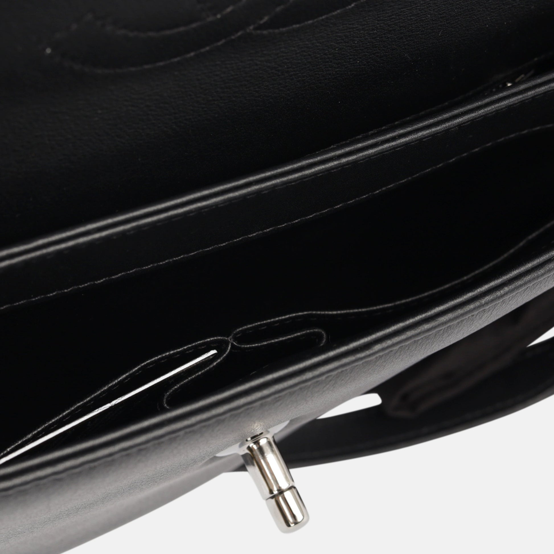 Oozing allure and sophistication, Chanel presents one of its most ravishing, highly acclaimed handbags, the Chanel Trendy CC Flap in the clutch edition. Crafted from calfskin leather with ruthenium hardware, the handbag features a sharp silhouette.