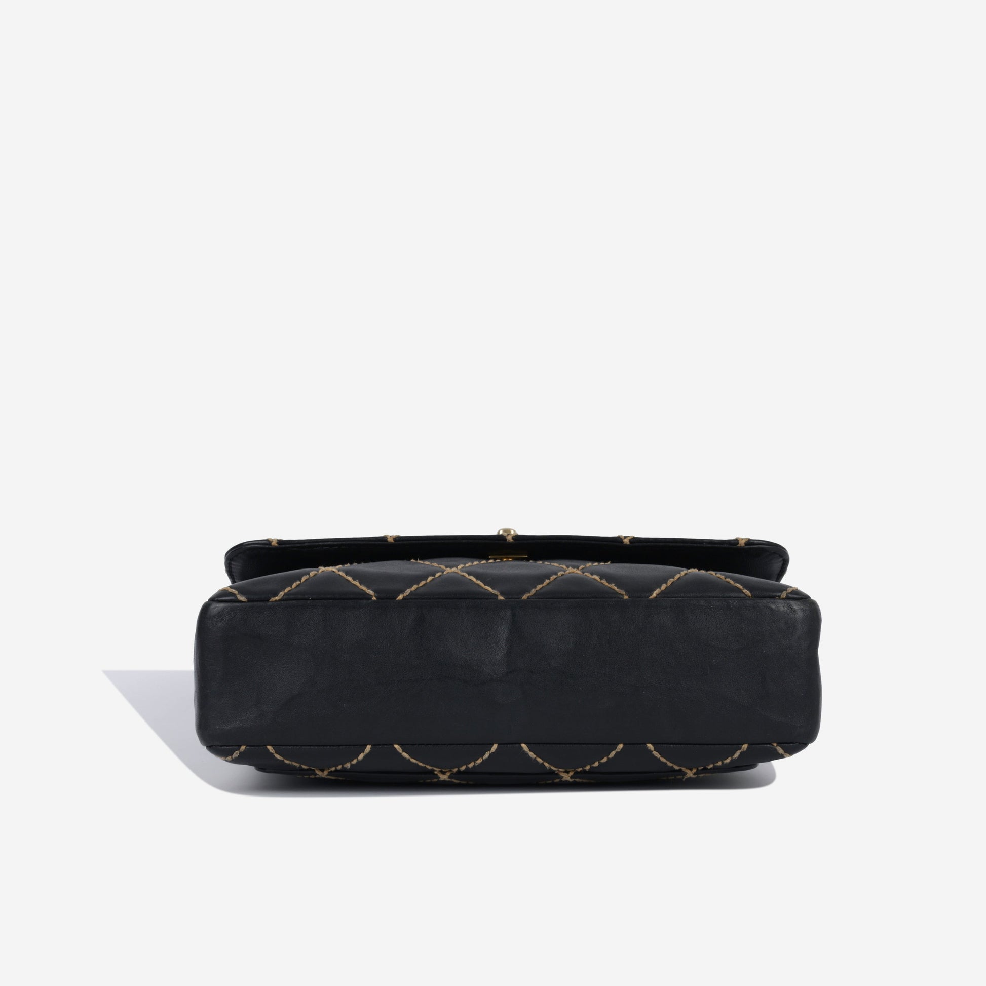 This beautiful piece is a slight variation on Chanels classic flap. Created from black calfskin leather, this bag features beautiful thicker stitching which adds dimension to this bag. In a similar size to the classic medium, it is the perfect size for taking with you day to day and fit your belongings comfortably.