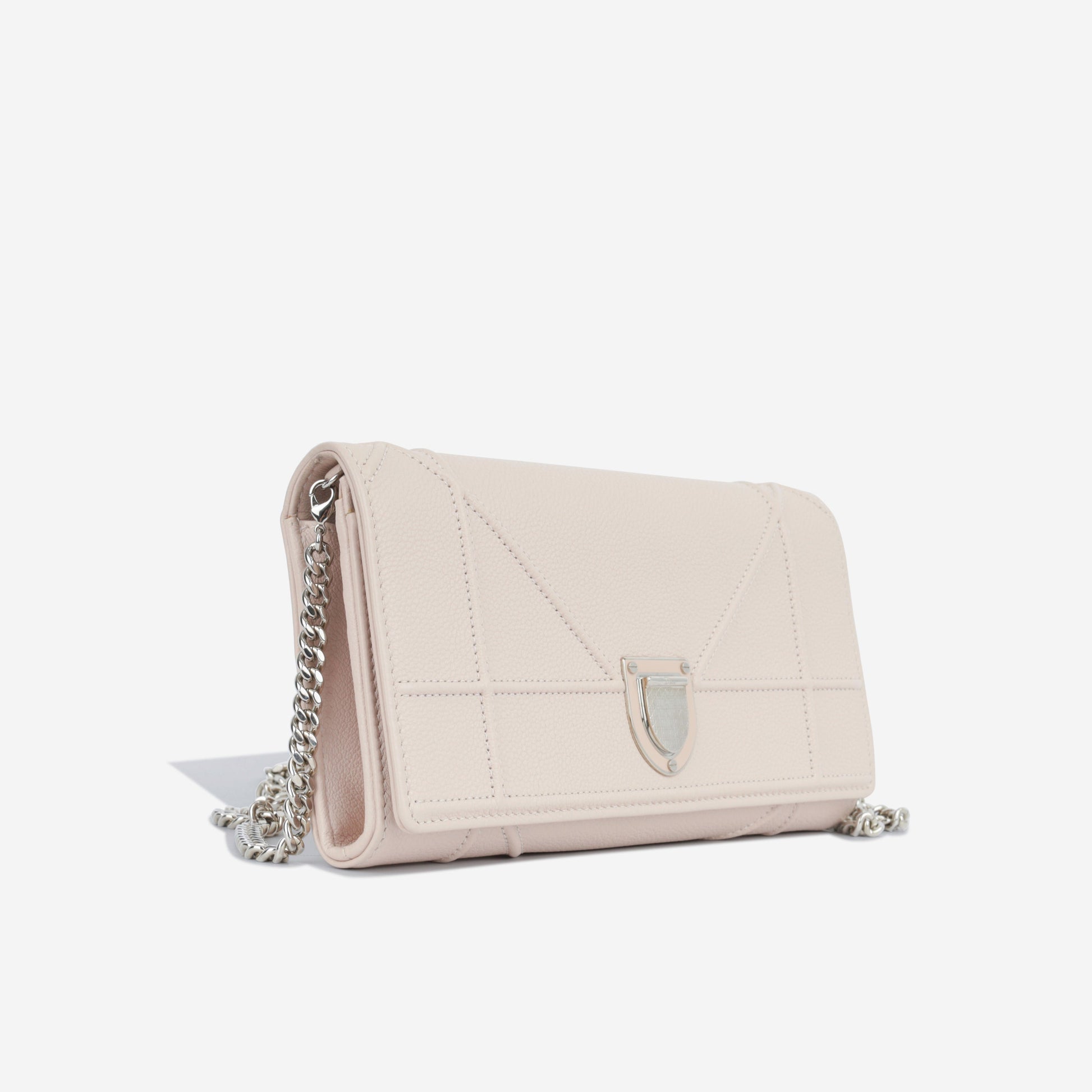 The Diorama debuted in Dior's Spring / Summer 2015 collection and to say it took the fashion lovers of the world by storm would be an understatement. The smallest from the beloved line, this Diorama Wallet-On-Chain is one of the cutest, prettiest bags we’ve seen in a while. Carefully crafted in a soft pink, textured leather and accentuated by silver tone hardware, this piece is truly special and well worthy of any luxury handbag collection.
