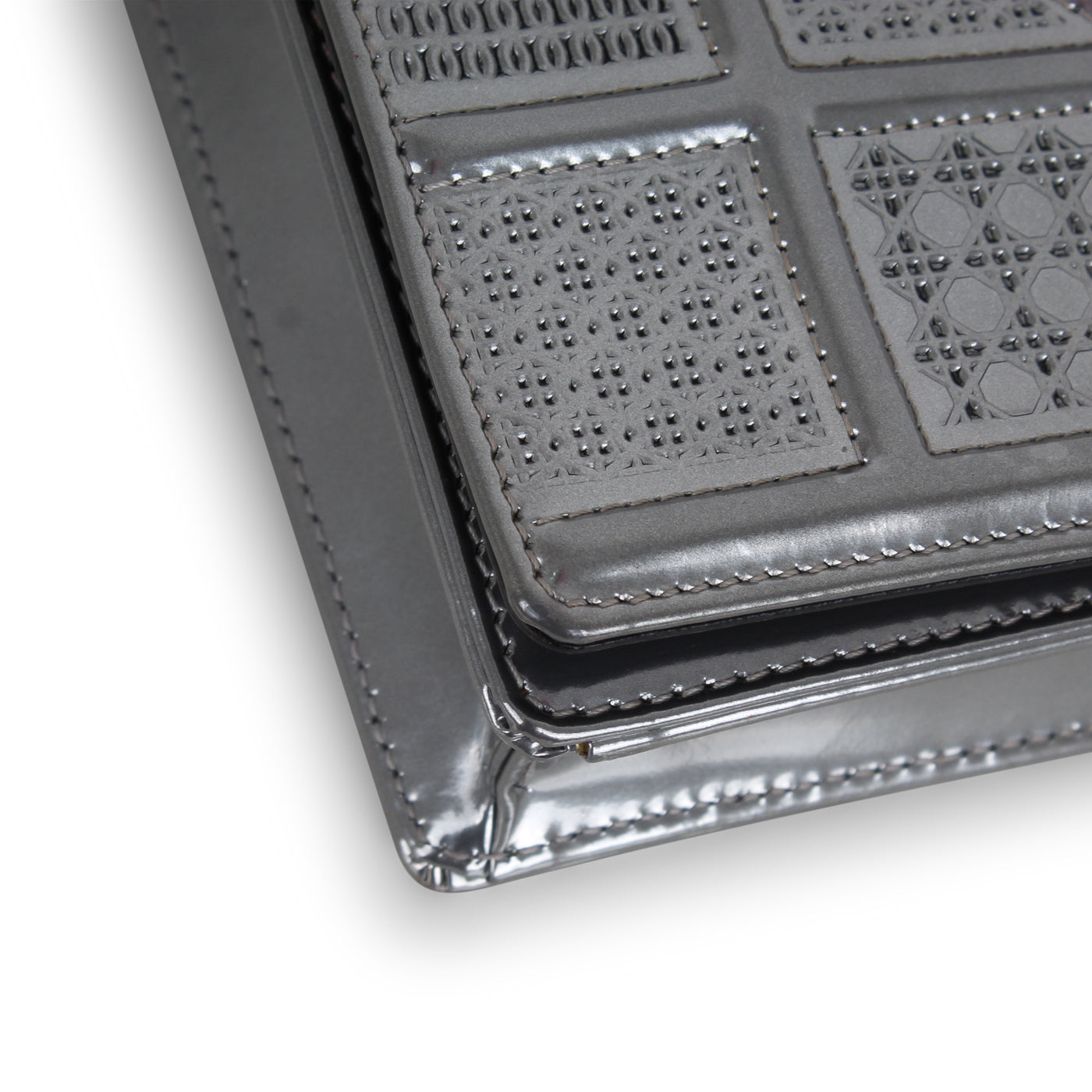 - Silver-tone metallic calfskin with a micro-cannage motif