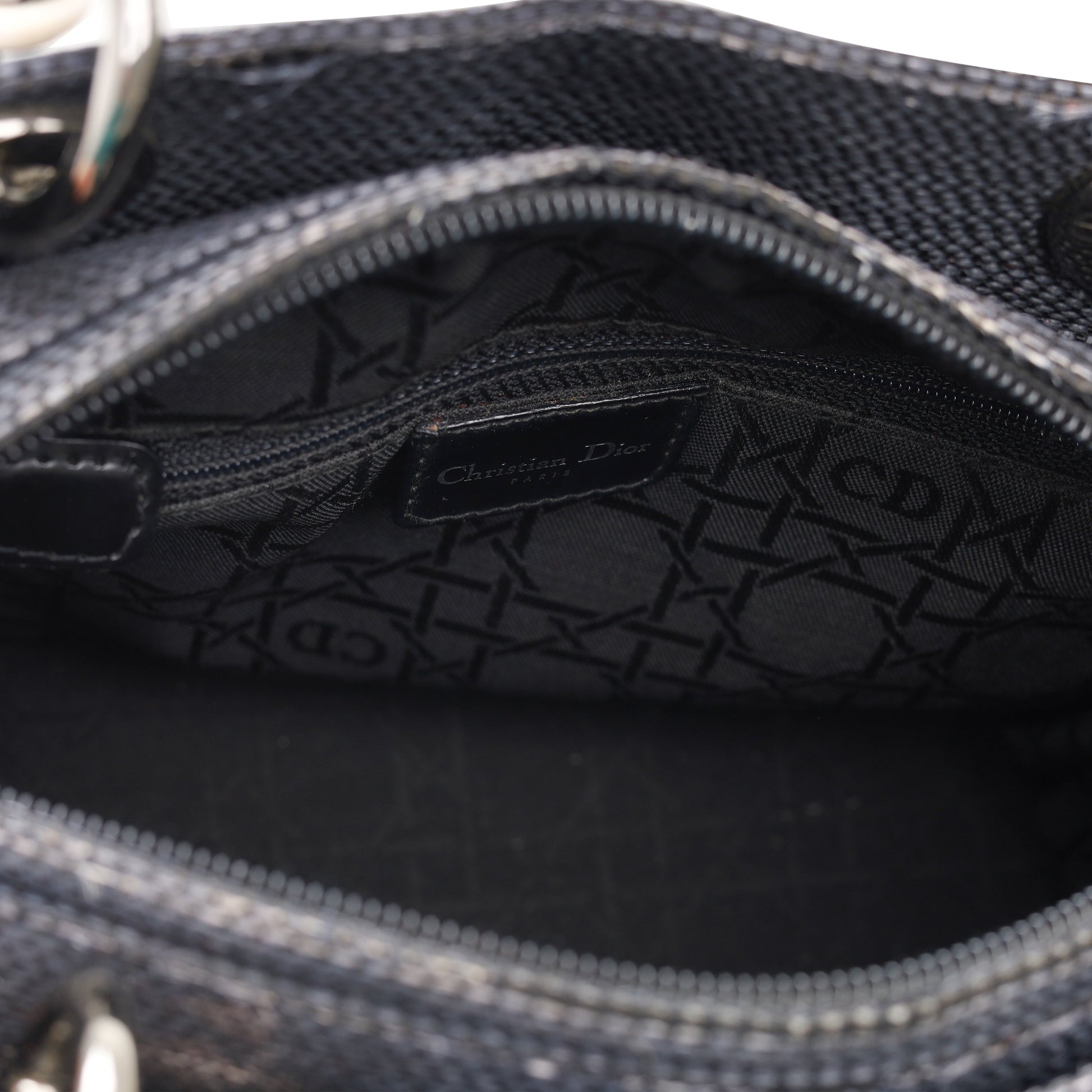 A rare medium Lady Dior Two-Way crafted from black nylon with contrasting white handles. The 1998 made bag features silver hardware with a zip closure. The timeless design comes in a medium size and displaying a true essence of vintage.