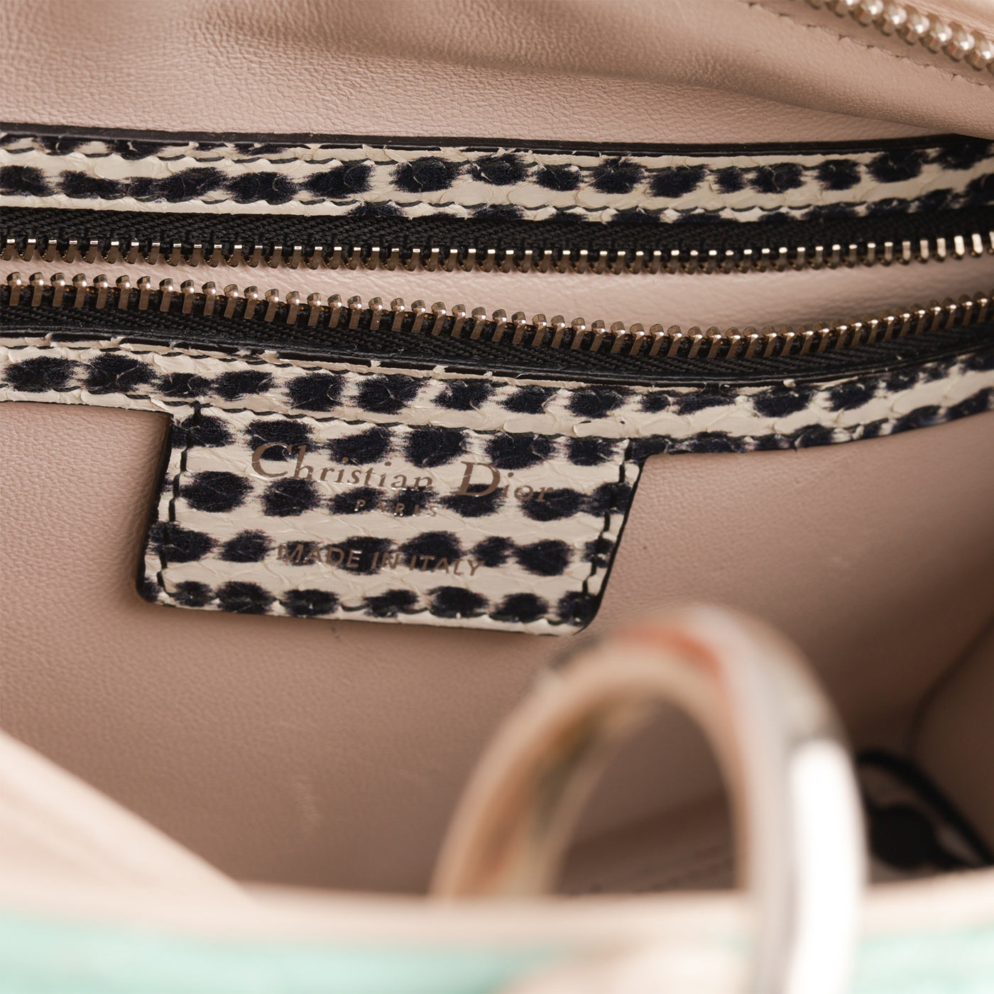 The Lady Dior embodies the definition of timeless and classic elegance. A bag that can take you from day to night, this statement piece is crafted from turquoise lambskin leather and accented with python spotted panels. For those that want a showstopper piece, this Lady Dior is a true must-have for any woman with a love for luxury.