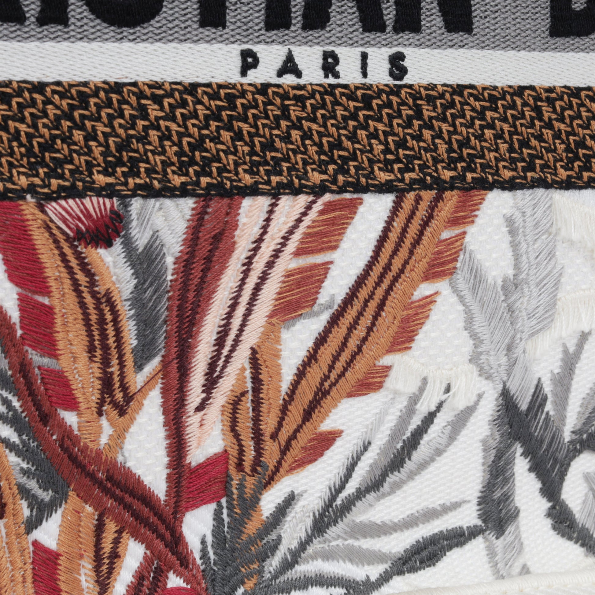 - White, red and grey floral embroidered canvas